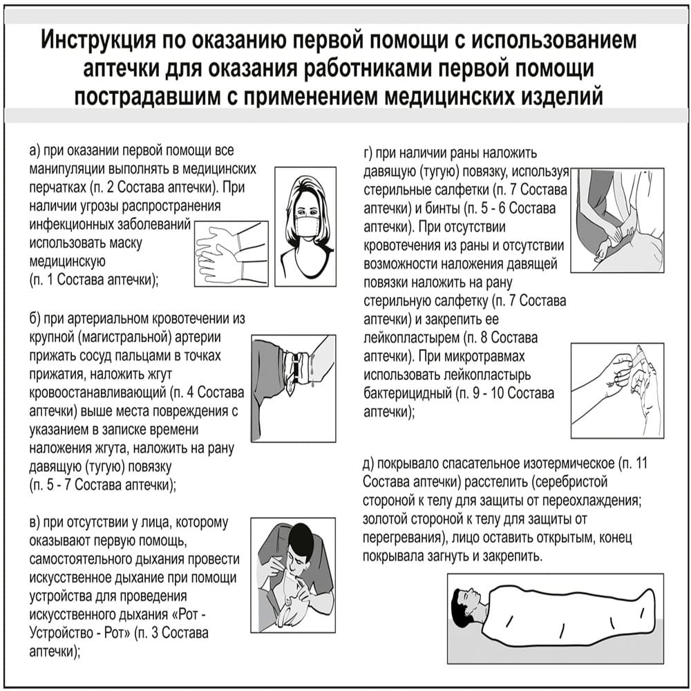 13 Инструкция по оказанию первой помощи с использованием аптечки для оказания работниками первой помощи пострадавшим с применением медицинских изделий 1 шт.