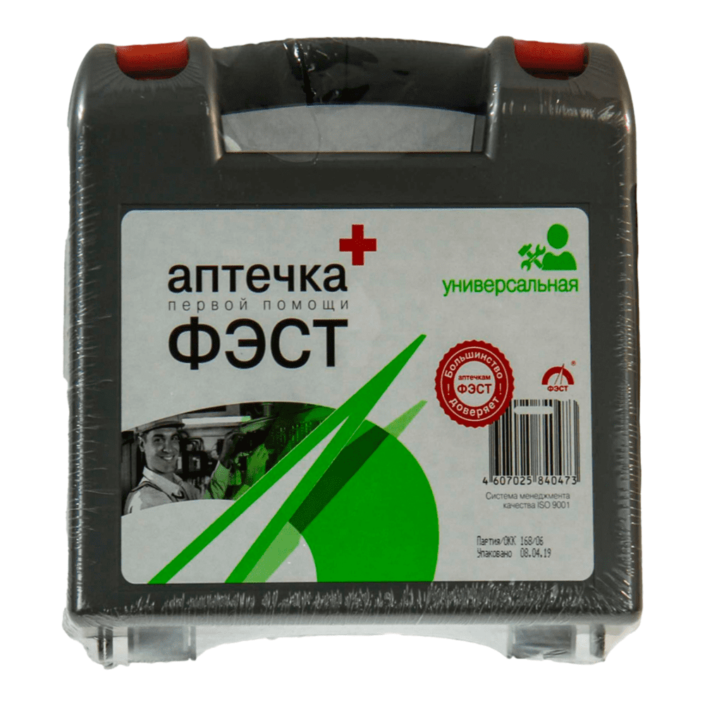 Аптечка «ФЭСТ» универсальная используется для оказания первой неотложной помощи в экстренной ситуации на производстве. Рассчитана на 7 человек. Аптечка содержит обезболивающие средства, дезинфицирующие вещества и перевязочные материалы. Упакована в пластиковый футляр в форме чемодана с защелкивающимися клипсами.