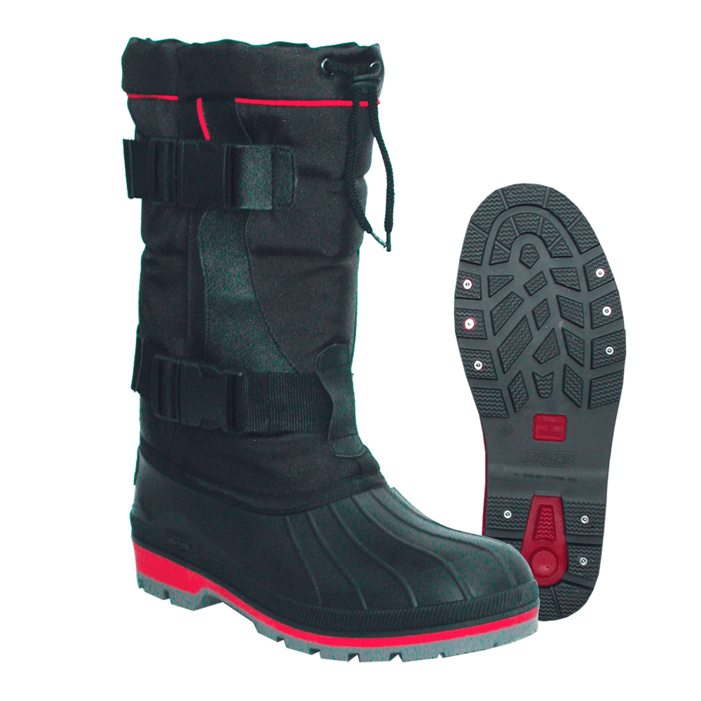 Бахилы мужские «Орлан» предназначены для длительного пребывания на морозе. Выполнены в комбинации: нижняя часть - галоша из материала ТЭП, надставка из водоотталкивающего материала на подкладке (поролон, спанбонд). Шнуровка плотно фиксирует голенище по ноге. Подошва с глубоким протектором прошипована стальными шипами. Метод крепления борто-прошивной. Комплектуется вкладным чулком из дублированного материала - фольгированного нетканого полотна и искусственного меха с добавлением натуральных волокон.