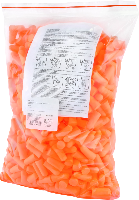 Противошумные вкладыши изготовлены из мягкого гипоаллергенного вспененного полиуретана, принимают форму слухового канала.