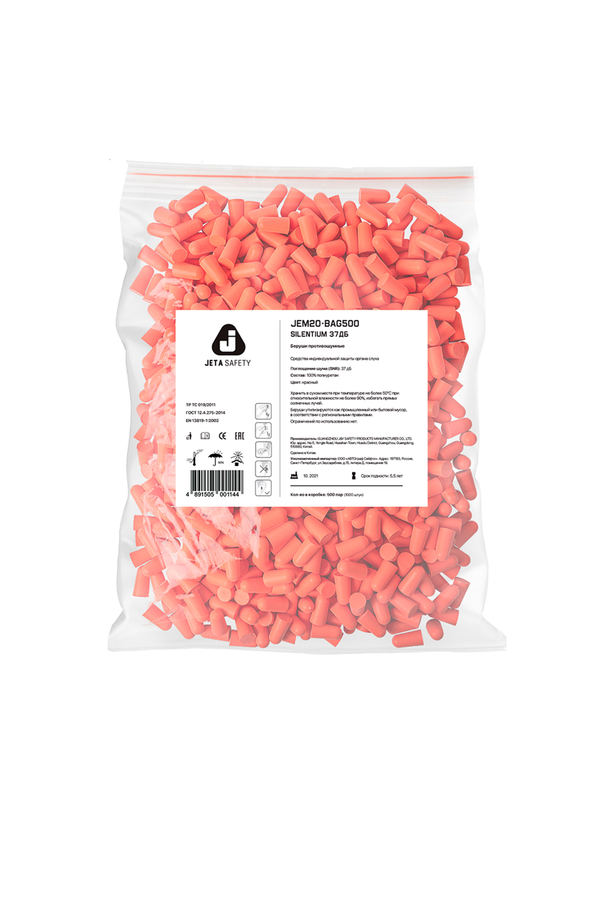 Противошумные беруши из мягкого гипоаллергенного вспененного полиуретана - большая упаковка (500 пар), подходят для диспенсера.