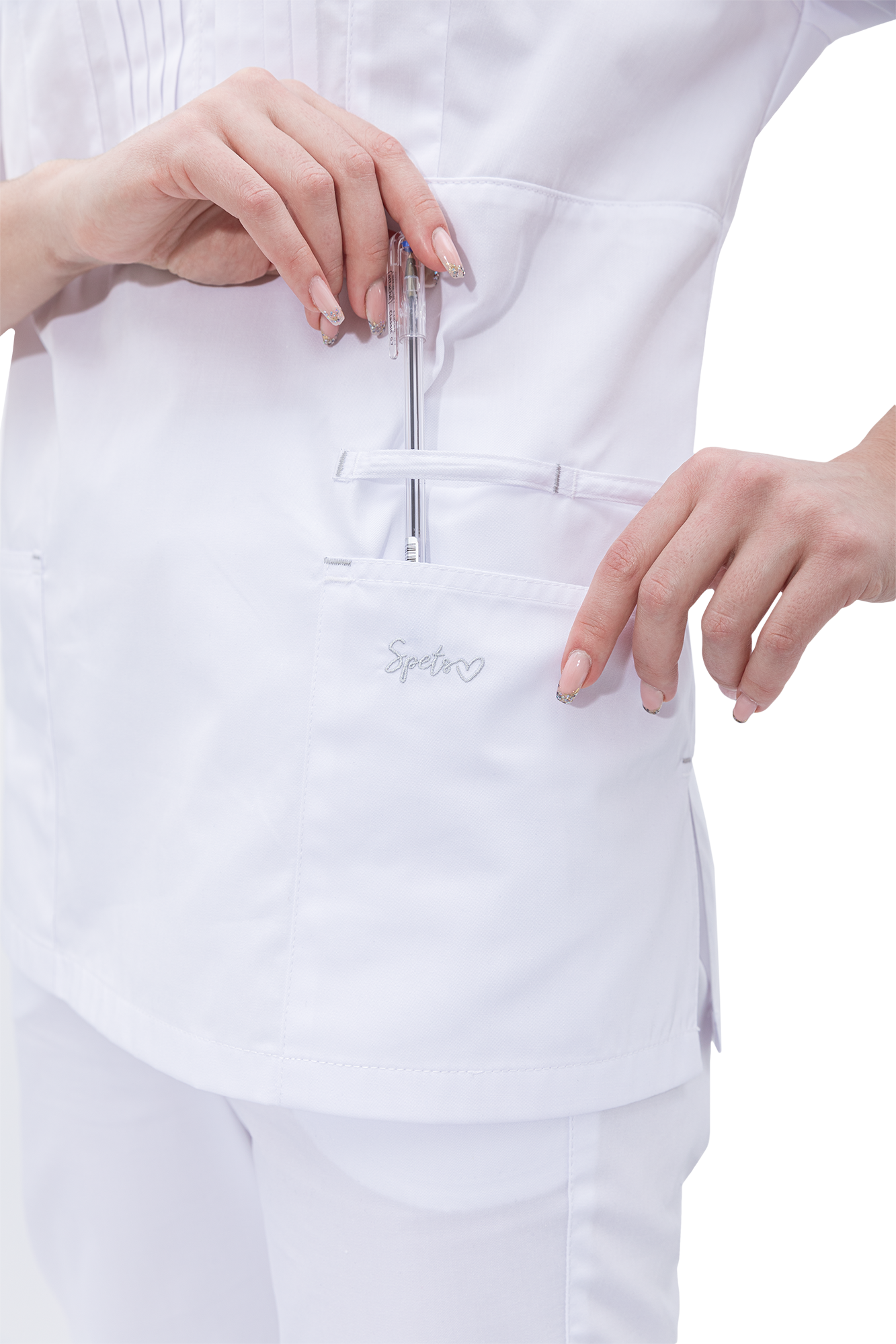 • яркие акценты в виде вышивки spets и автоматических закрепок контрастного