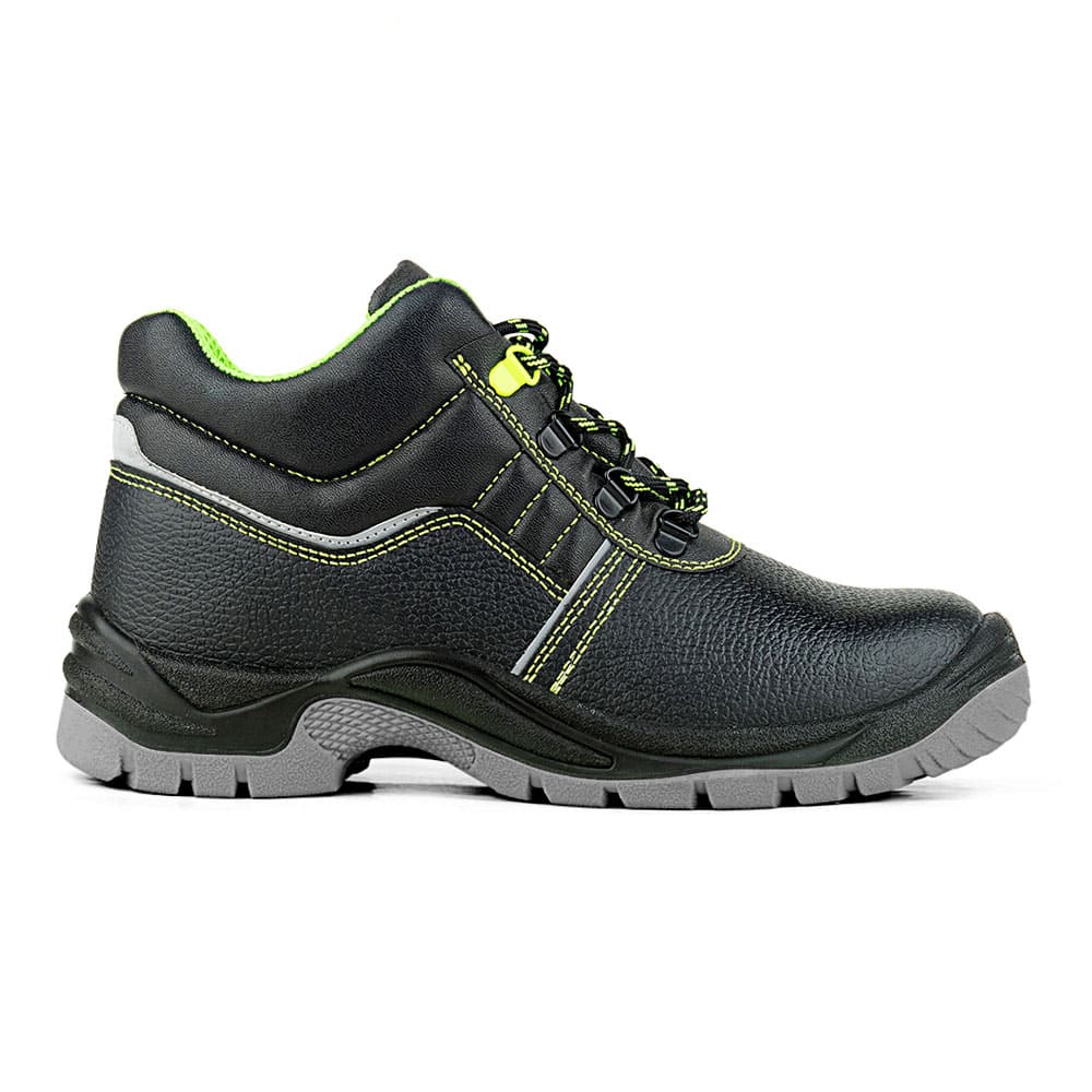 Кожаные ботинки Prosafe серии Neon Lime c мягким кантом и глухим клапаном для защиты ног от общих производственных загрязнений в отапливаемых помещениях и на открытом водухе в летний период. Сетчатая подкладка создает комфортные условия носки в течении рабочей смены. Шнуровка, проходящая через металлические петли, обеспечивает комфортную адаптивную посадку. В модели предусмотрена текстильная съемная стелька. Светоотражающие элементы повышают видимость работников в темное время суток, а также на неосвещенной территории. Подошва-двухслойная, маслобензостойкая, литьевого метода крепления. Промежуточный слой изготовлен из ПУ с внутренней амортизирующей вставкой в пяточной части подошвы, способной гасить нагрузки при ходьбе. Нижний ходовой слой- износостойкий, термостойкий ТПУ. Глубина протектора ходового слоя обеспечивает хорошую сцепляемость с поверхностями и препятствует скольжению. Термопластичный подносок обеспечивает защиту пальцев стопы.