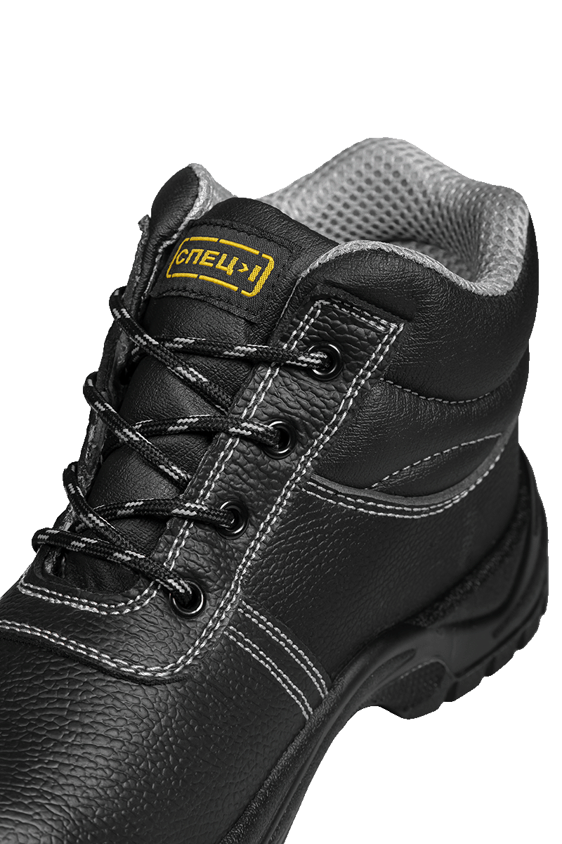 -Верх изготовлен из натуральной кожи - спилок с ПУ-покрытием (союзка, берец и задник), а мягкий кант выполнен из искусственной кожи, что обеспечивает надежную защиту, комфорт и долговечность в сложных условиях труда.