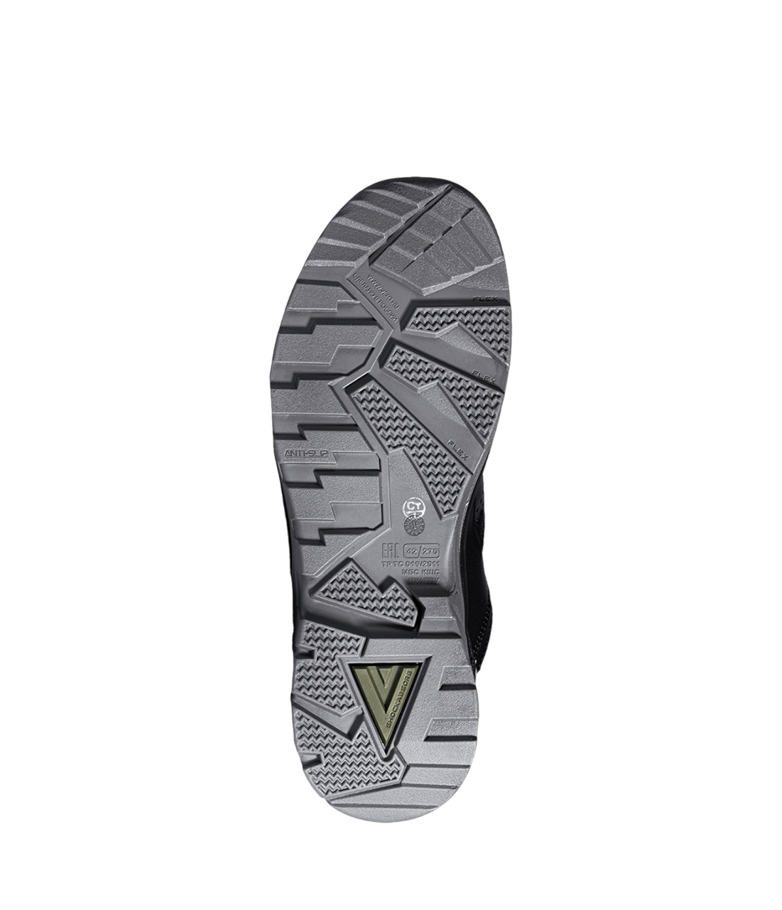 -Подошва с глубоким протектором и продуманным дизайном обеспечивает наилучшую защиту от скольжения на различных типах поверхностей, гарантируя уверенность и безопасность в каждой рабочей ситуации.