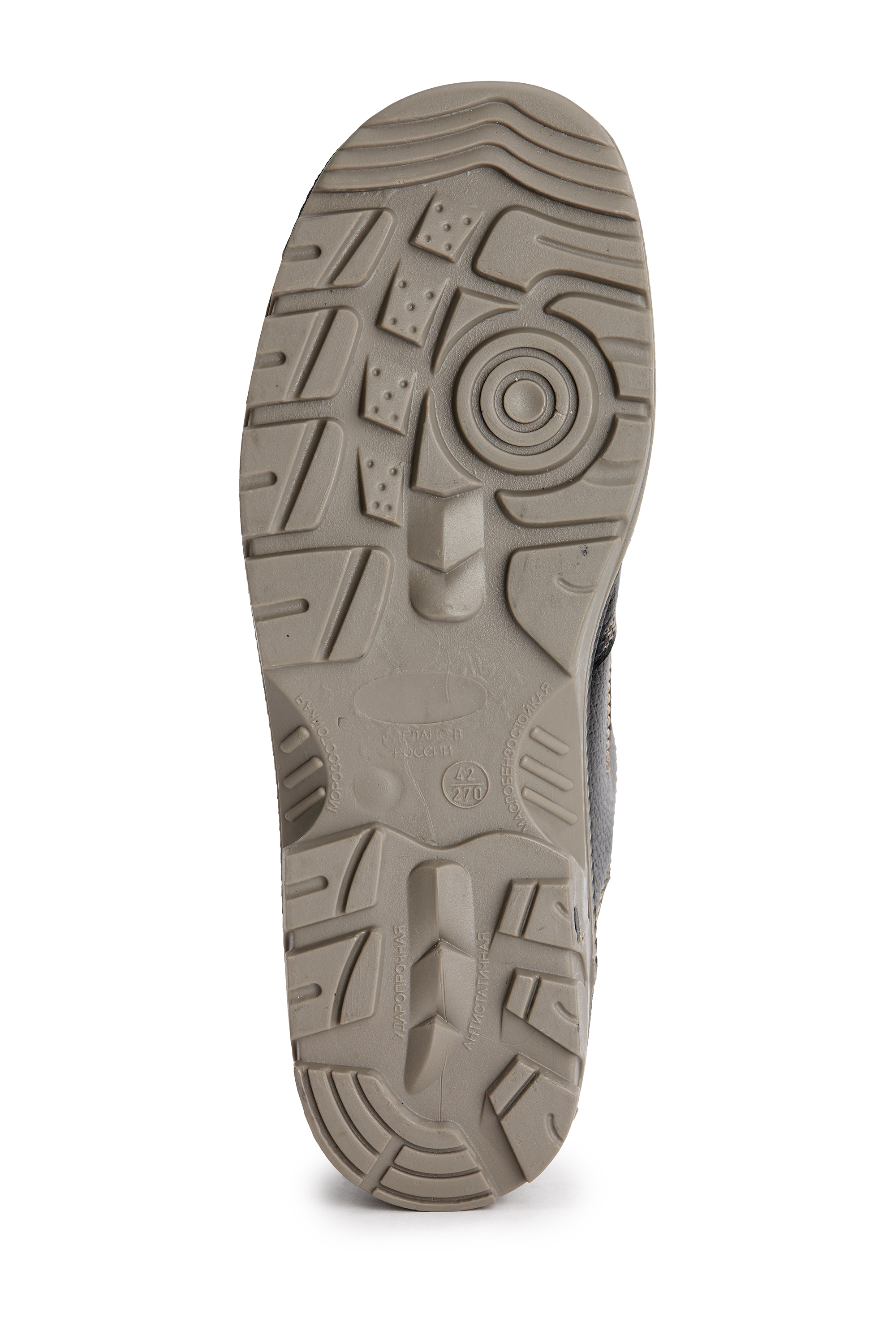 ■ Подошва: ПУ-ТПУ, двухцветная, внутренний слой из облегченного и амортизирующего полиуретана, ходовой слой из более плотного термополиуретана, обладает повышенной прочностью и обеспечивает защиту от агрессивных сред (МБС, КЩС), имеет специальный протектор, эффективно препятствующий скольжению, глубина протектора составляет 4,5-5,0 мм.