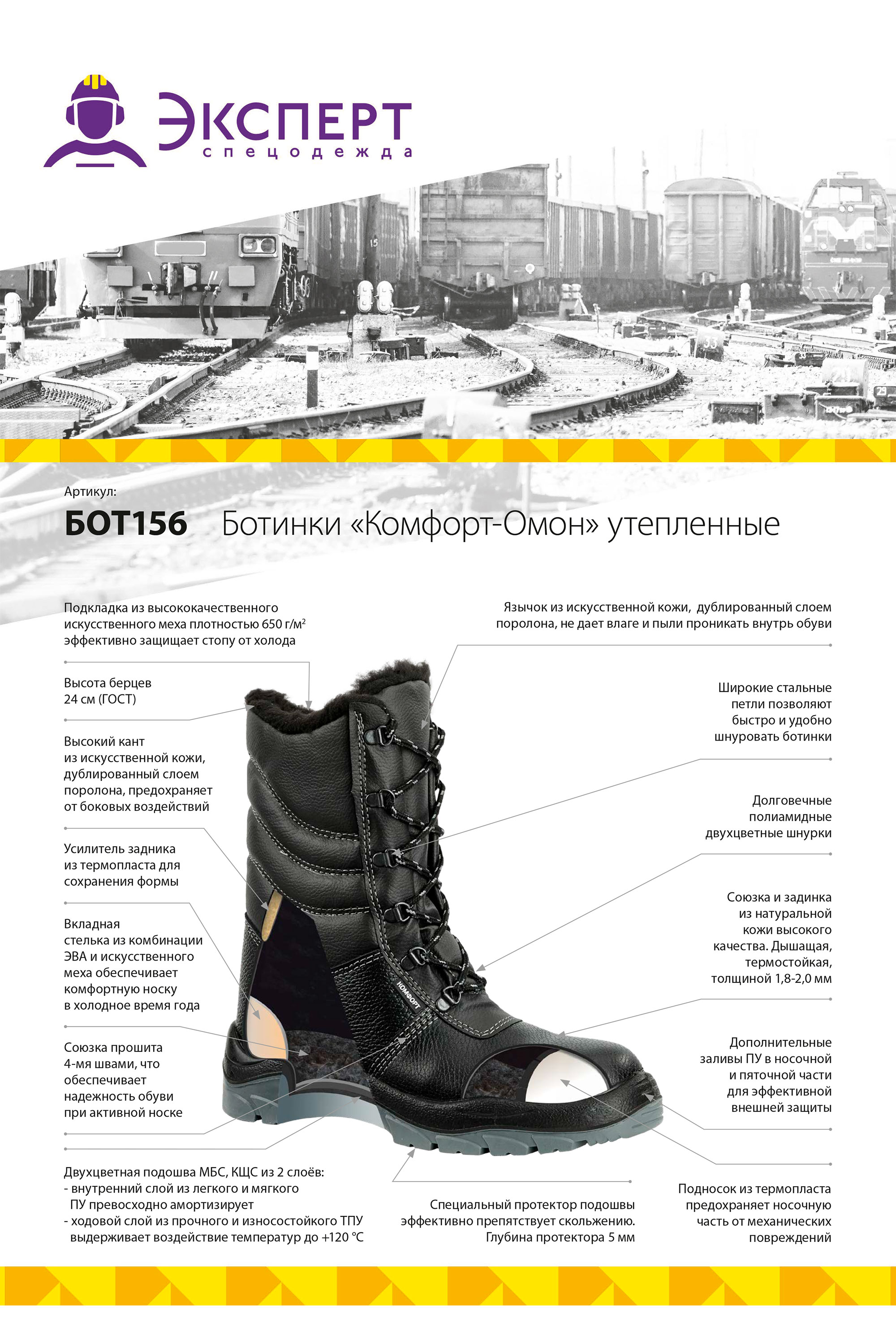 ■ Верх обуви: комбинированный, союзка и берец выполнены из натуральной кожи (юфть яловая толщиной 2,0мм), а высокий мягкий кант из искусственной кожи.