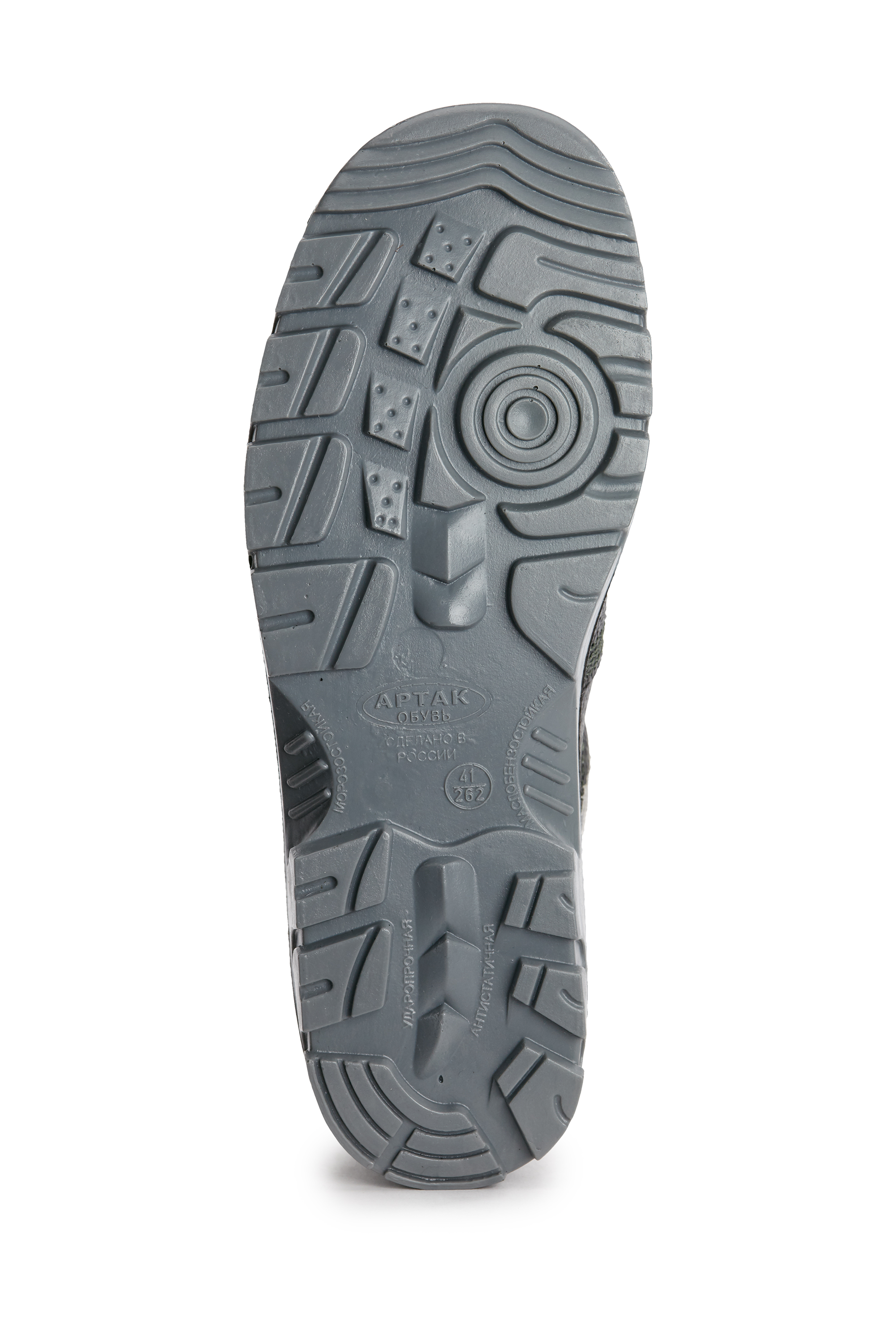 ■ Подошва: ПУ-ТПУ, двухцветная, внутренний слой из облегченного и амортизирующего полиуретана, ходовой слой из более плотного термополиуретана, обладает повышенной прочностью и обеспечивает защиту от агрессивных сред (МБС, КЩС), имеет специальный протектор, эффективно препятствующий скольжению, глубина протектора составляет 4,5-5,0 мм.