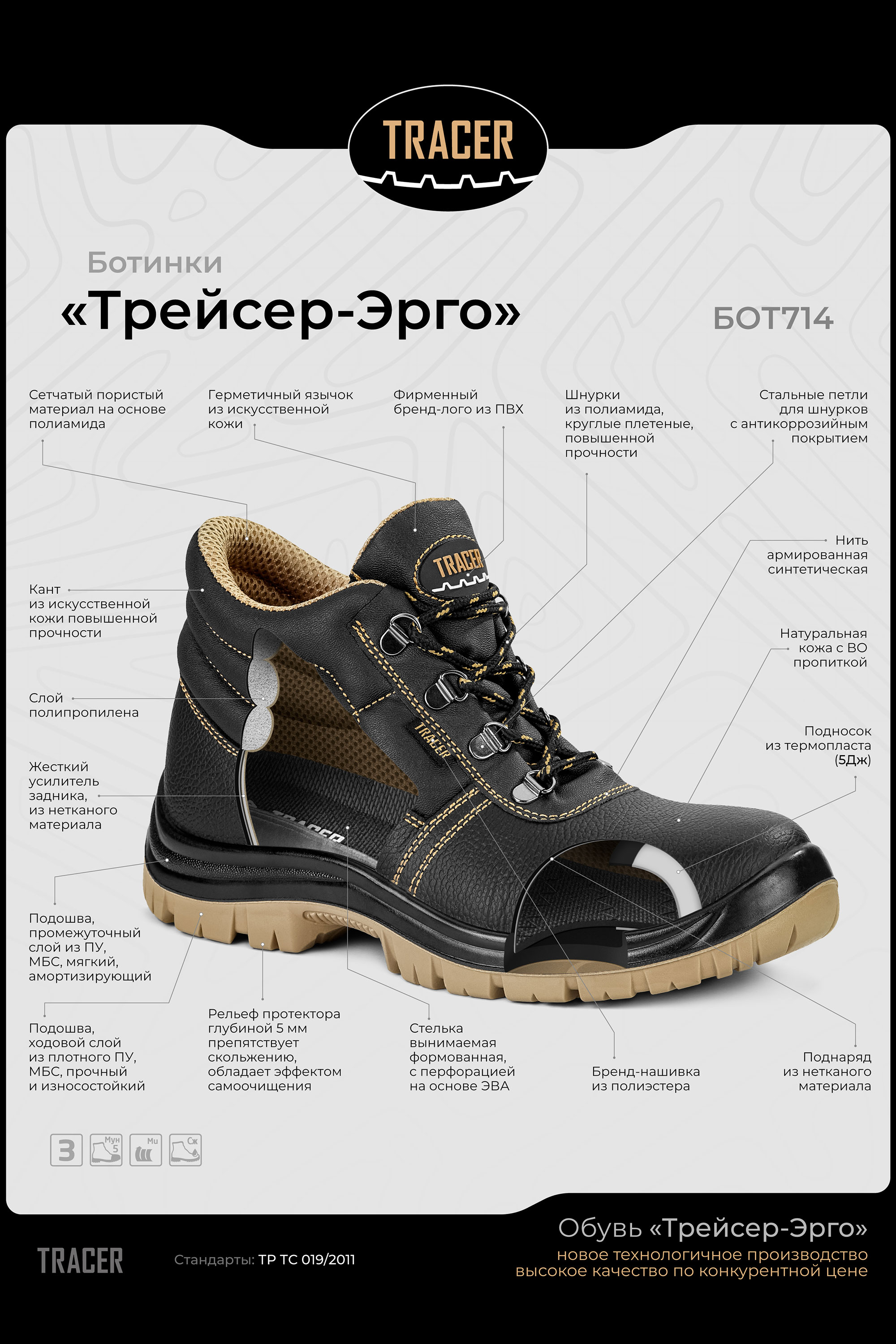 ■ Особенности конструкции: практичный стиль верха обуви в сочетании с обновленным дизайном подошвы и облегченной подкладки насыщенного бежевого цвета. Обувная колодка удобной эргономичной формы. Верх обуви прошит армированной ПЭ нитью. Используются круглые плетеные шнурки повышенной прочности.
