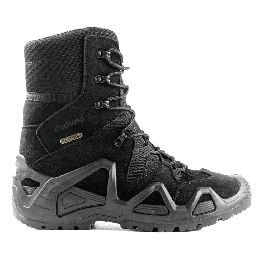 Треккинговые ботинки фирмы «ELKLAND» изготовлены из водостойкого полиэстера и микрофибры высокой плотности. Внутренняя часть ботинка выполнена из синтетических нитей – Mesh, а также мембранной ткани, которые позволяют ногам оставаться сухими даже в очень влажную погоду, а также быть комфортными в носке при температуре от 0 до + 30 градусов. Специальная разработка дизайна подошвы и стельки с высокой упругостью выполнены с помощью технологии High Poly modeling , ее особенность – боковая поддержка и фиксация стопы, что является важным аспектом в условиях неровных поверхностей. В верхней части ботинка разработан специальный дизайн петель для ускоренной шнуровки и фиксации затяжки шнурка, а также расположен глухой клапан с отворотом, где можно спрятать свободные концы шнурков.