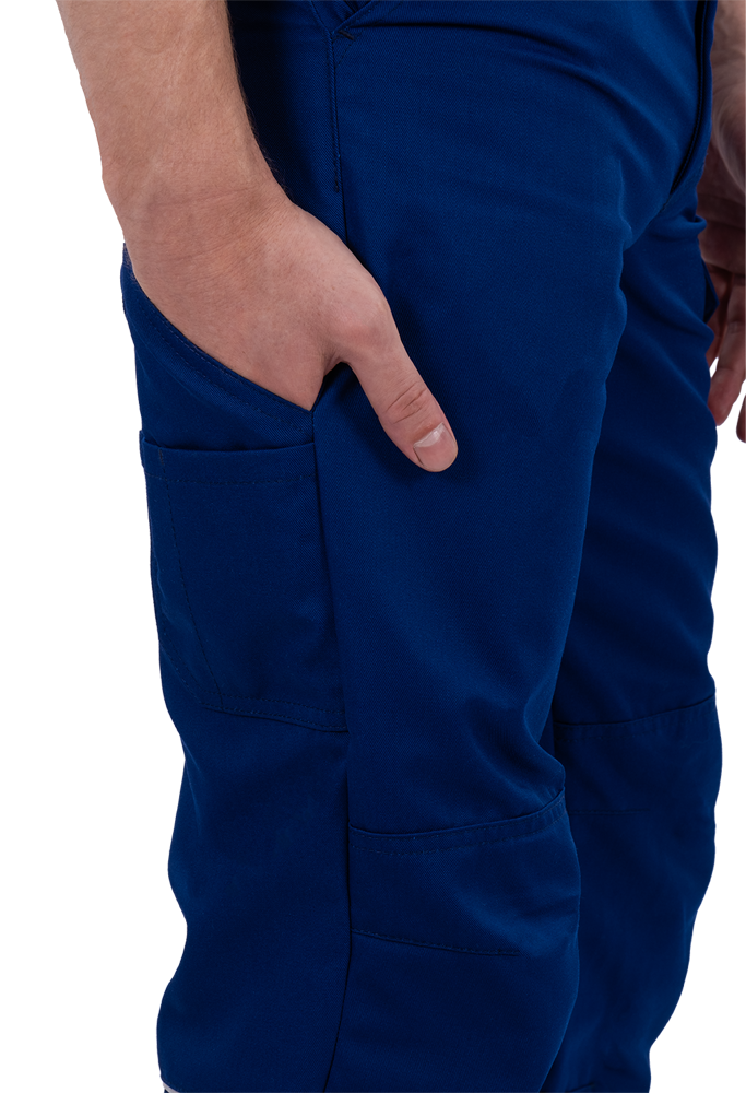 • 6 карманов: 2 боковых с наклонным входом, 2 накладных на задней половинке, 1 карман для инструментов на правом боковом шве, 1 накладной с клапаном на ленте контакт, с малым карманом на левом боковом шве