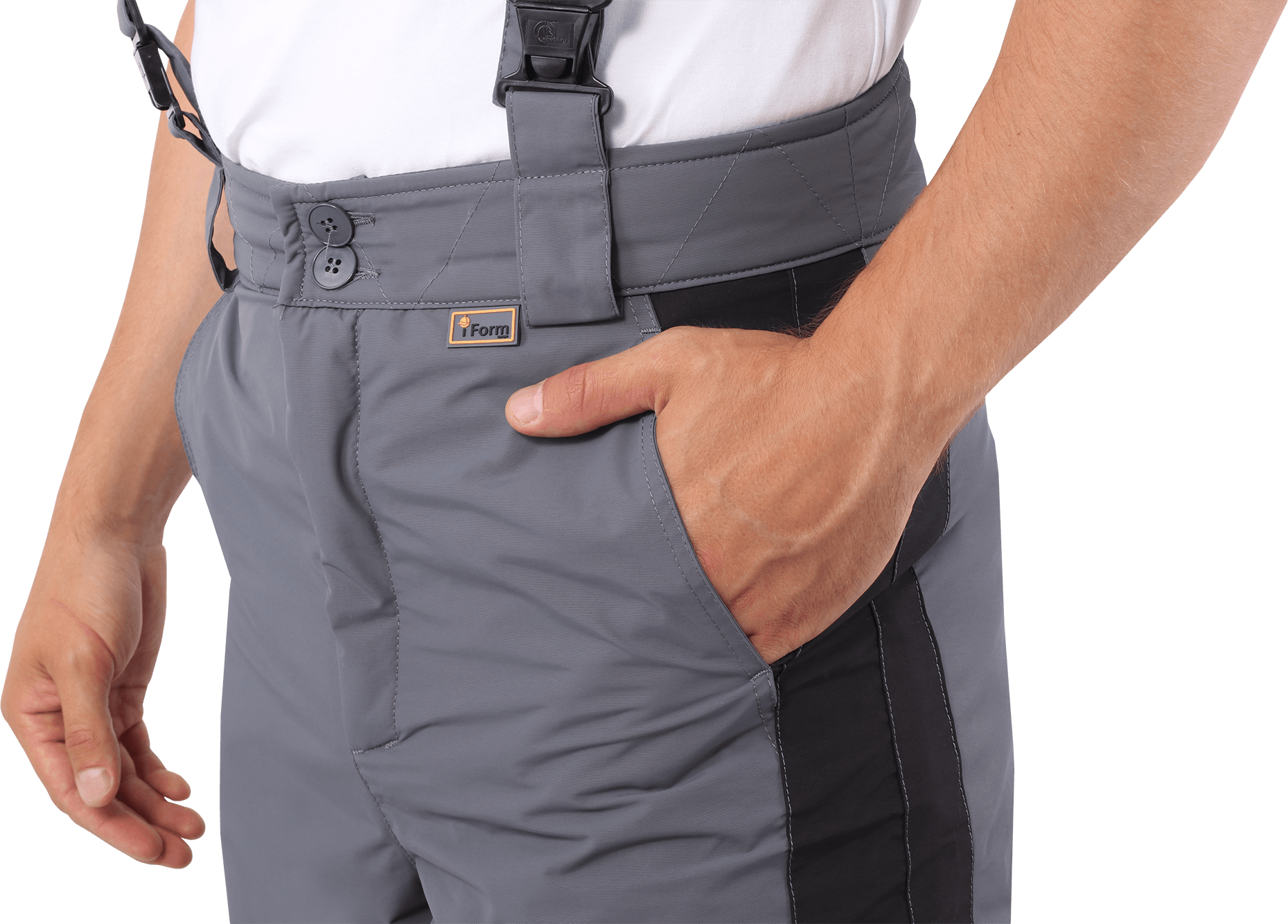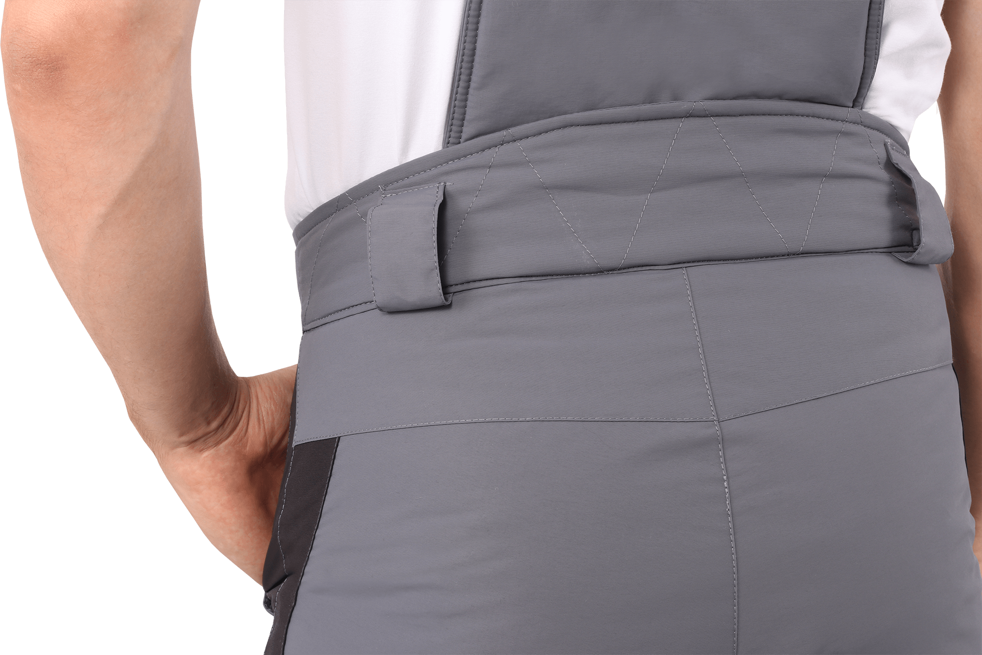 • высокий утеплённый пояс с застёжкой на пуговицы