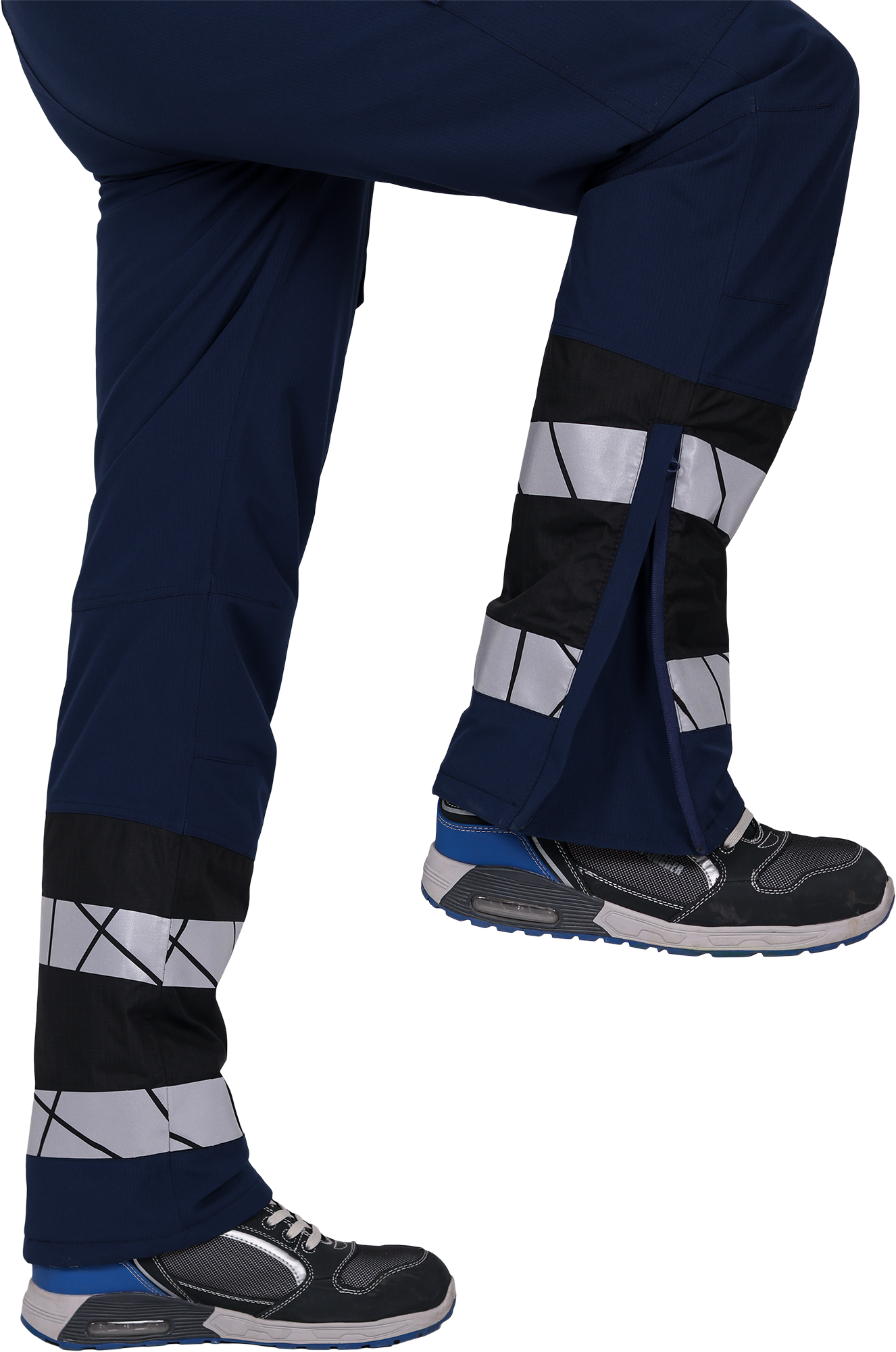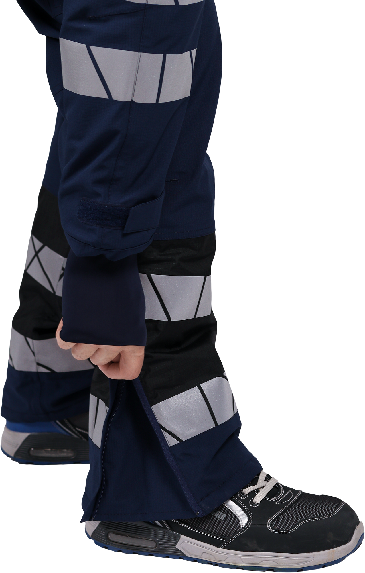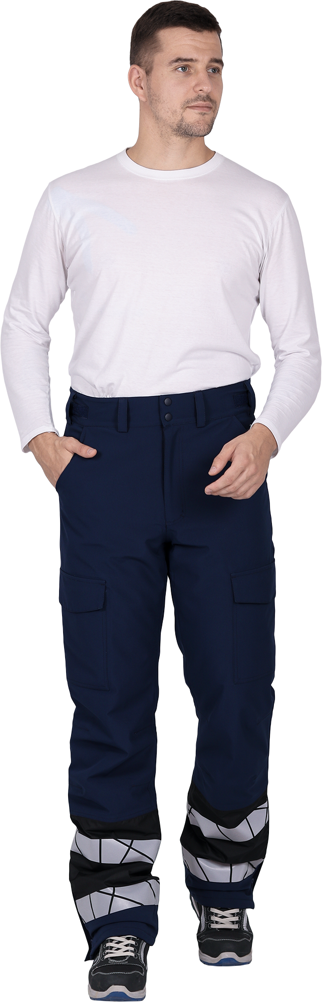 • две охватывающие термолкеевые световозвращающие полосы шириной 50 мм по низу брюк