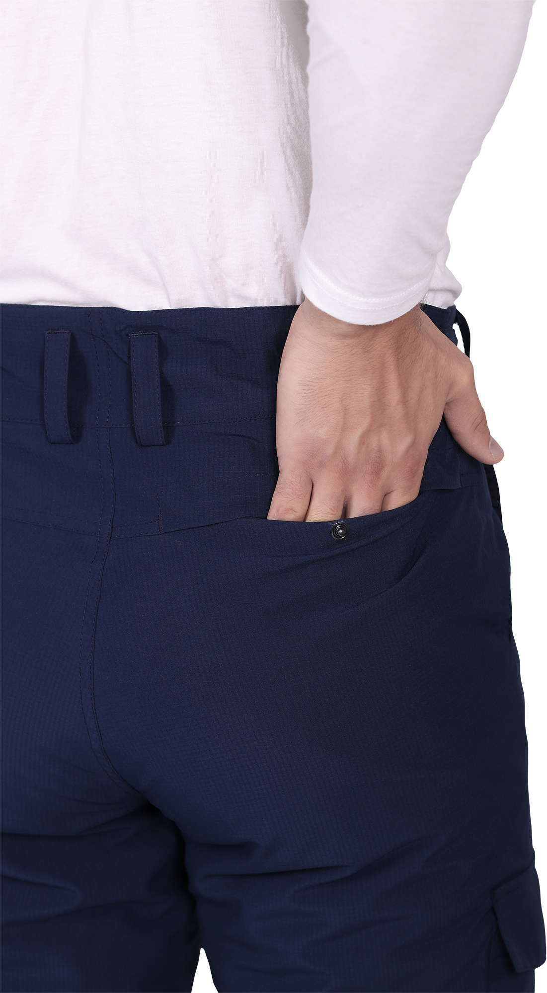 • на поясе с застежкой на две кнопки и ленту-контакт, с застежкой - гульф на тесьму-молнию, ширина пояса к среднему шву задних половинок брюк увеличена для защиты поясницы от переохлаждения