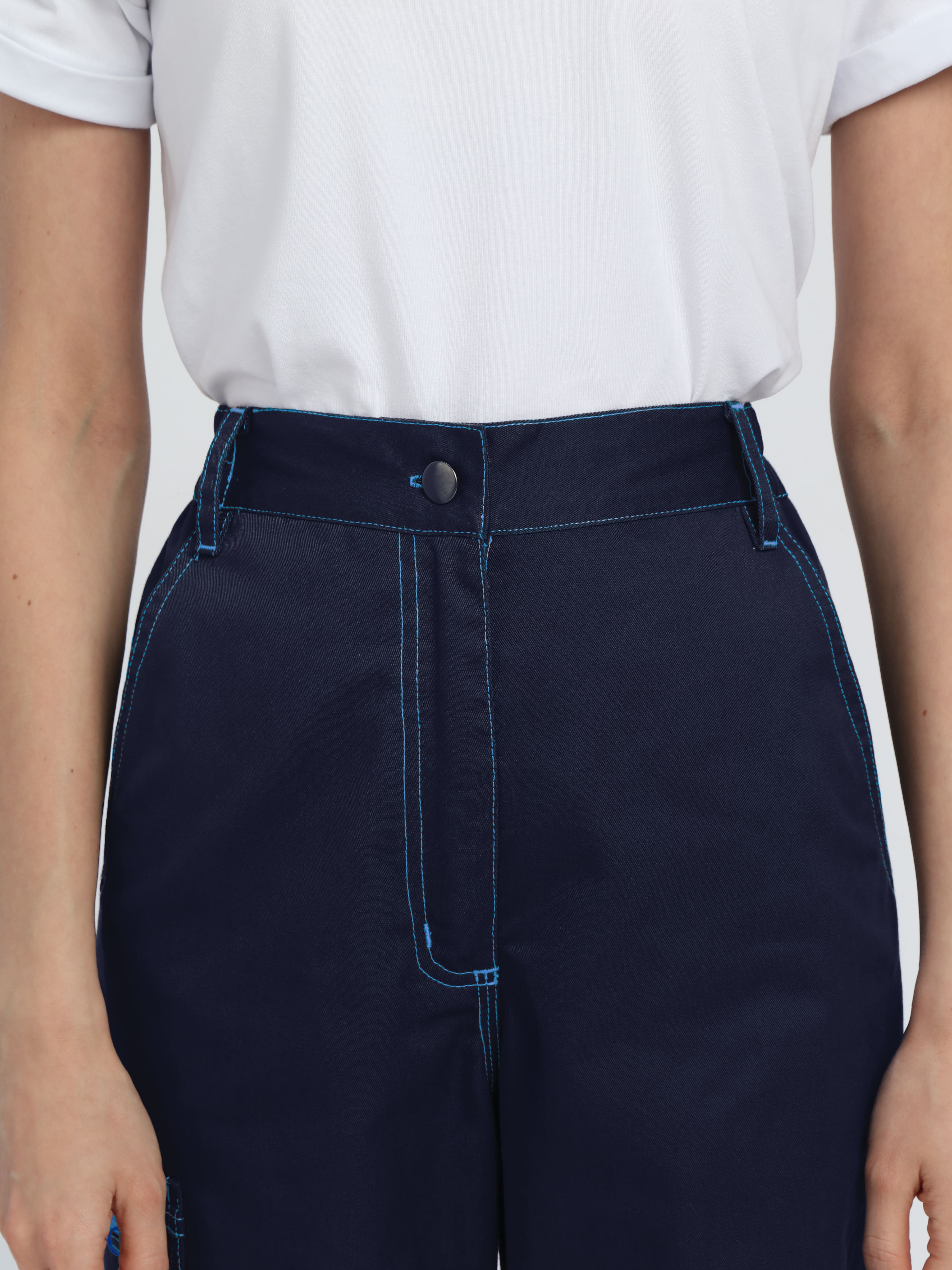 - Прямой силуэт с застежкой-гульфиком на молнию и пуговицей для надежной фиксации
