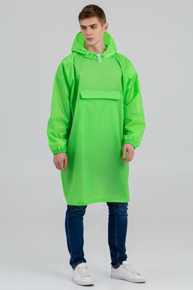 Дождевик-анорак с капюшоном из ткани . Карман с клапаном на молнии.