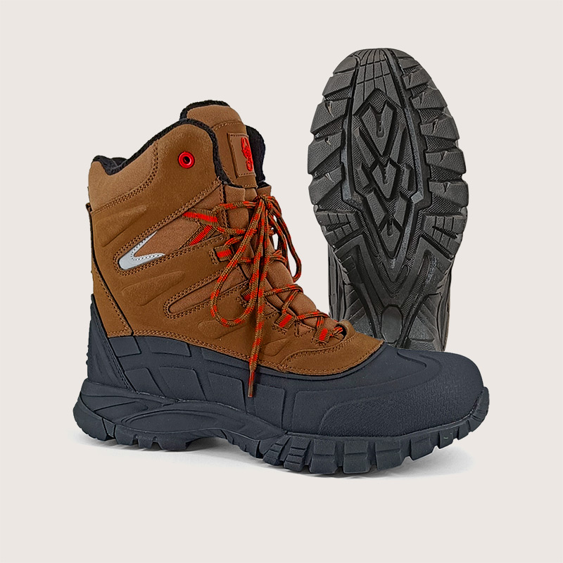 Верх обуви выполнен в виде галоши из CPU пластика и микрофибры с отделкой из современных обувных материалов, что обеспечивает необходимые защитные функции обуви и значительно уменьшает массу.