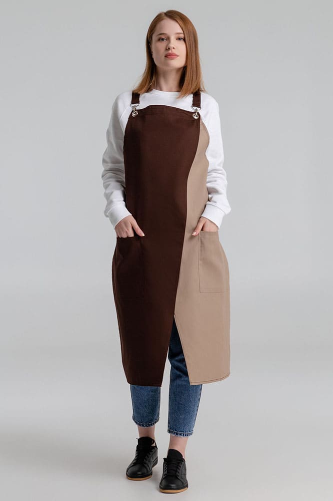 Фартук с длинными регулируемыми лямками и удобными карманами.