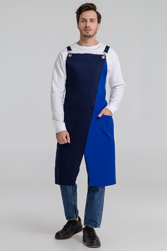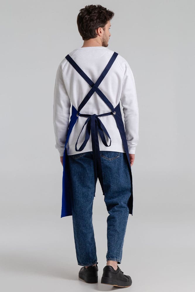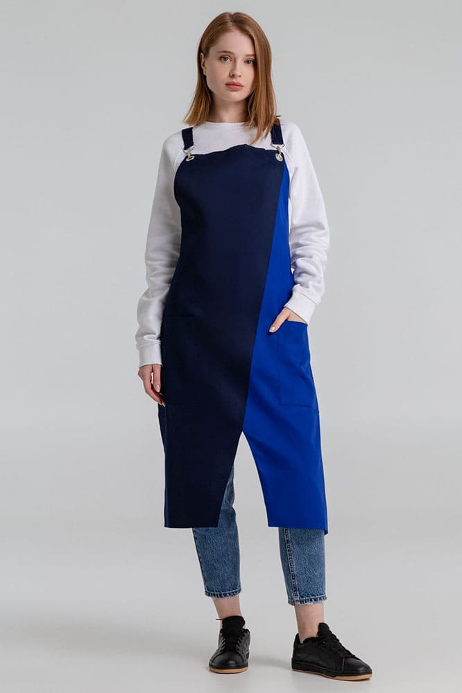 Фартук с длинными регулируемыми лямками и удобными карманами.