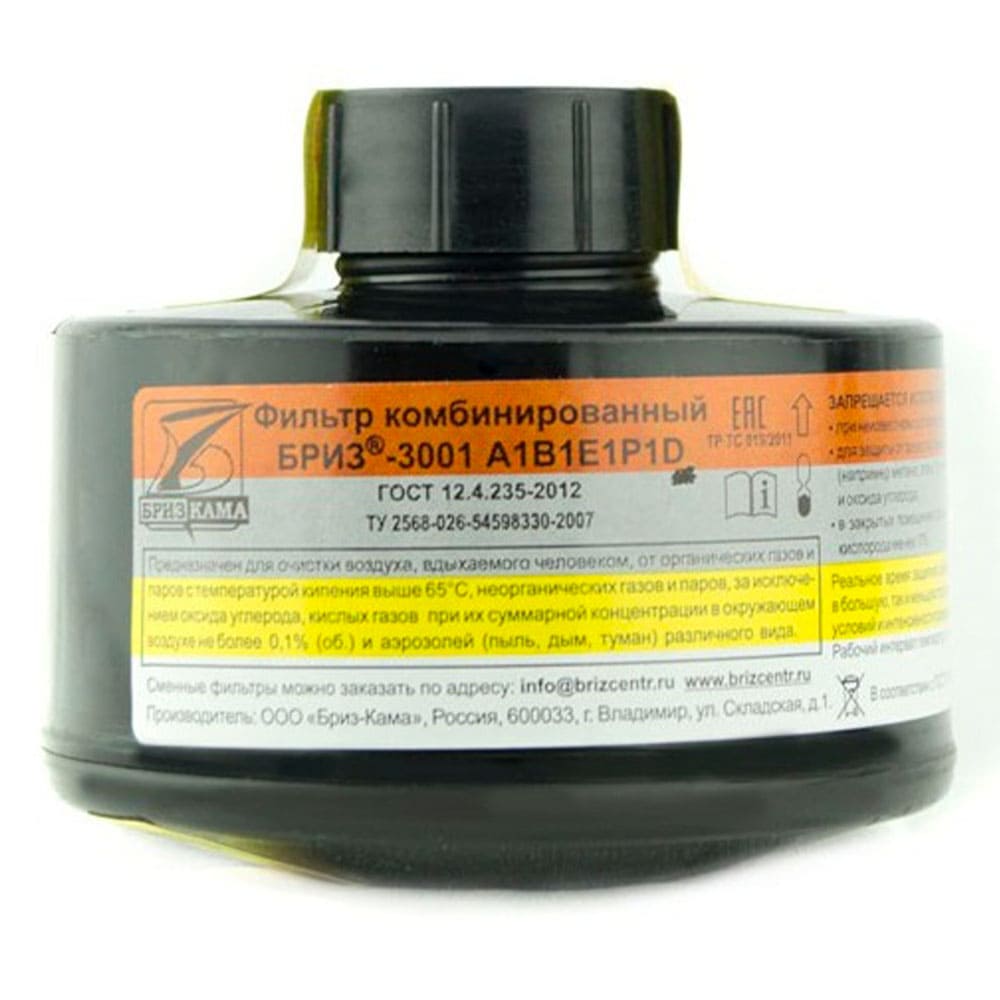 Фильтр комбинированный Бриз-3001 A1B1E1P1D применяется для очистки вдыхаемого загрязненного воздуха от: