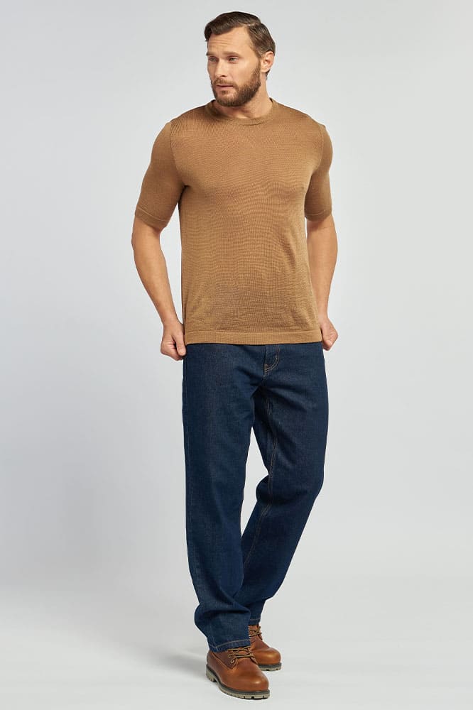 "Термофутболка шерстяная мужская бренда Doctor TM - изготовлена из мягкой верблюжьей шерсти особого ультратонкого плетения. Она прекрасно согреет вас в холодное время. Высокое качество материала, плоские швы и согревающий эффект позволяют носить футболку как самостоятельный элемент одежды и в качестве дополнительного слоя взамен стандартного термобелья. Основное отличие натуральной верблюжьей шерсти от прочих материалов заключается в наличии полого волоса, за счет которого и достигается столь качественный согревающий эффект. Помимо согревающих качеств, верблюжья шерсть обладает микромассажным эффектом, стимулируя нервные окончания кожи. Кроме того, содержащийся в волокнах верблюжьей шерсти ланолин - лучшее природное средство для профилактики радикулита и сердечно-сосудистых заболеваний. Уникальное свойство верблюжьей шерсти заключается также и в том, что она антистатична и гипоаллергенна. Благодаря своему универсальному крою она подойдет мужчинам любого возраста и комплекции. Может быть использована в качеств