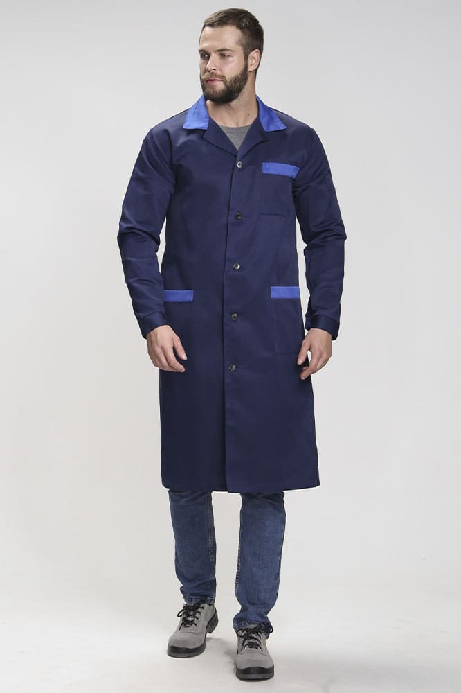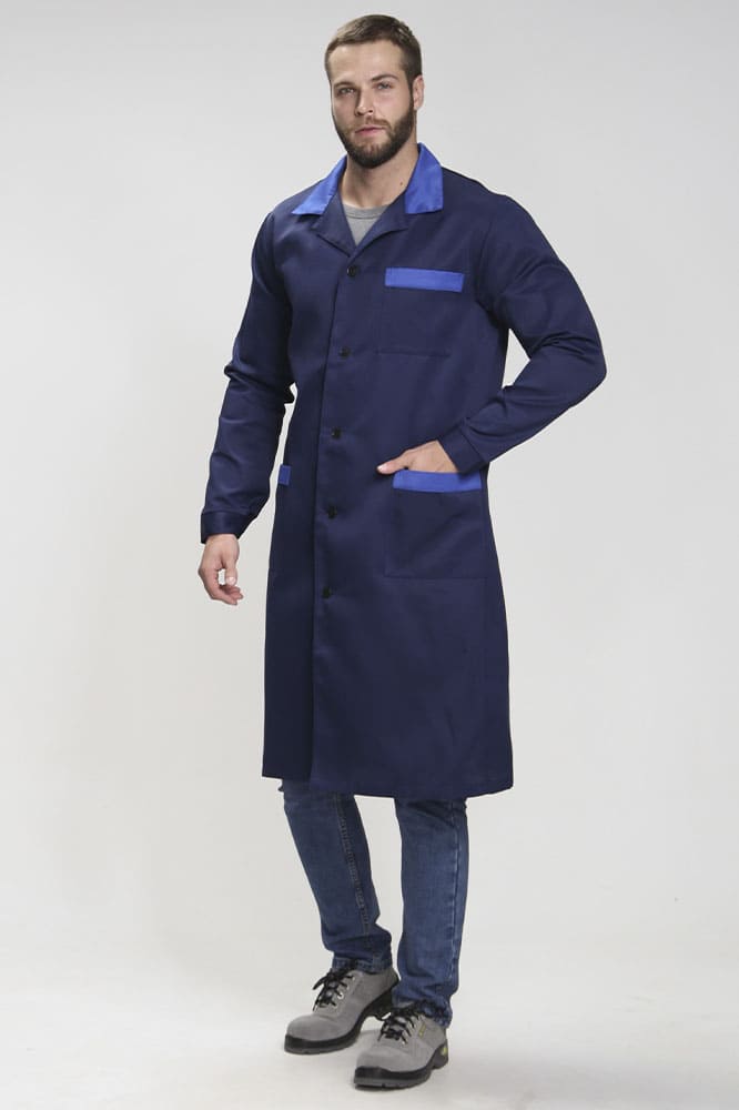 Халат мужской Технолог (тк.Смесовая,210), т.синий/васильковый