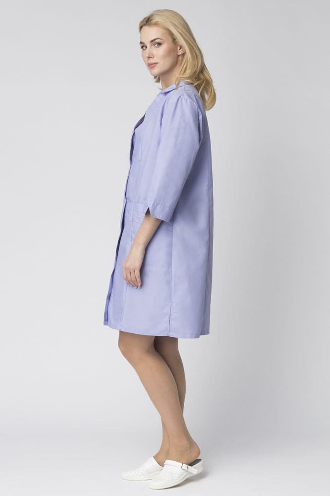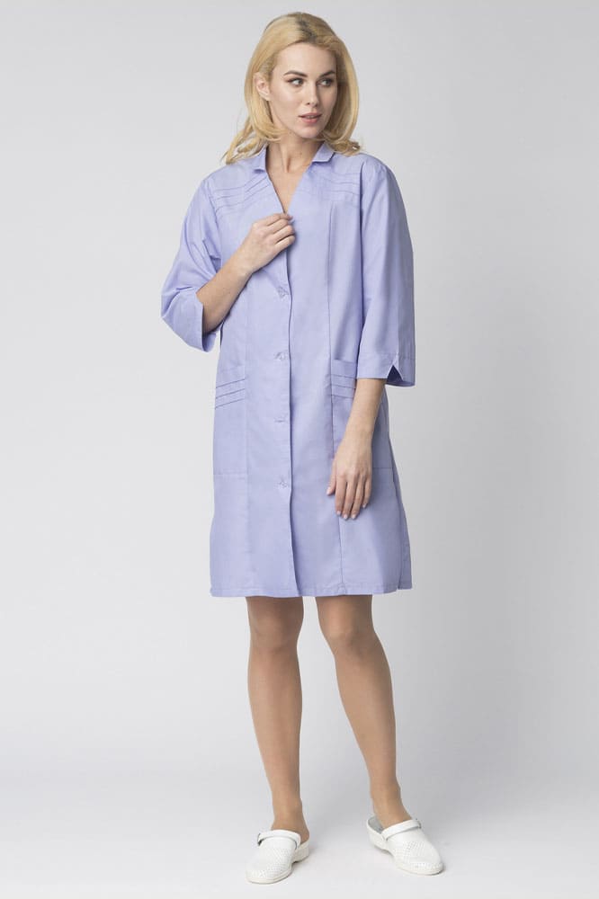 Халат рабочий женский «Лира» отличается замечательным качеством исполнения и стильным внешним видом. Медицинский халат изготовлен в соответствии с ГОСТ, надежно защищает от общих производственных загрязнений и прекрасно подходит для работы в салонах красоты, медицинских учреждениях, массажных салонах и стоматологиях. Благодаря воротнику-стойке и декоративной отделке карманов и кокетки женская спецодежда выглядит элегантно и женственно. Короткий женский халат полуприлегающего силуэта великолепно сидит по фигуре, подчеркивает линию талии. Удобные боковые карманы предназначены для хранения нужных записей и расходников. Плотная ткань рабочей одежды устойчива к многократным стиркам, отлично сохраняет форму. С помощью центральной застежки халат легко надевать, а рукава 3/4 не мешают работе.