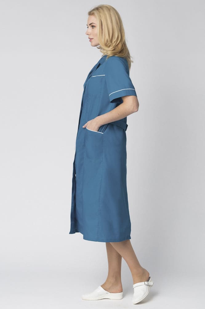 - контрастным белым кантом отделаны кокетка, карманы и манжеты