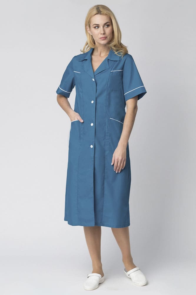 - контрастным белым кантом отделаны кокетка, карманы и манжеты