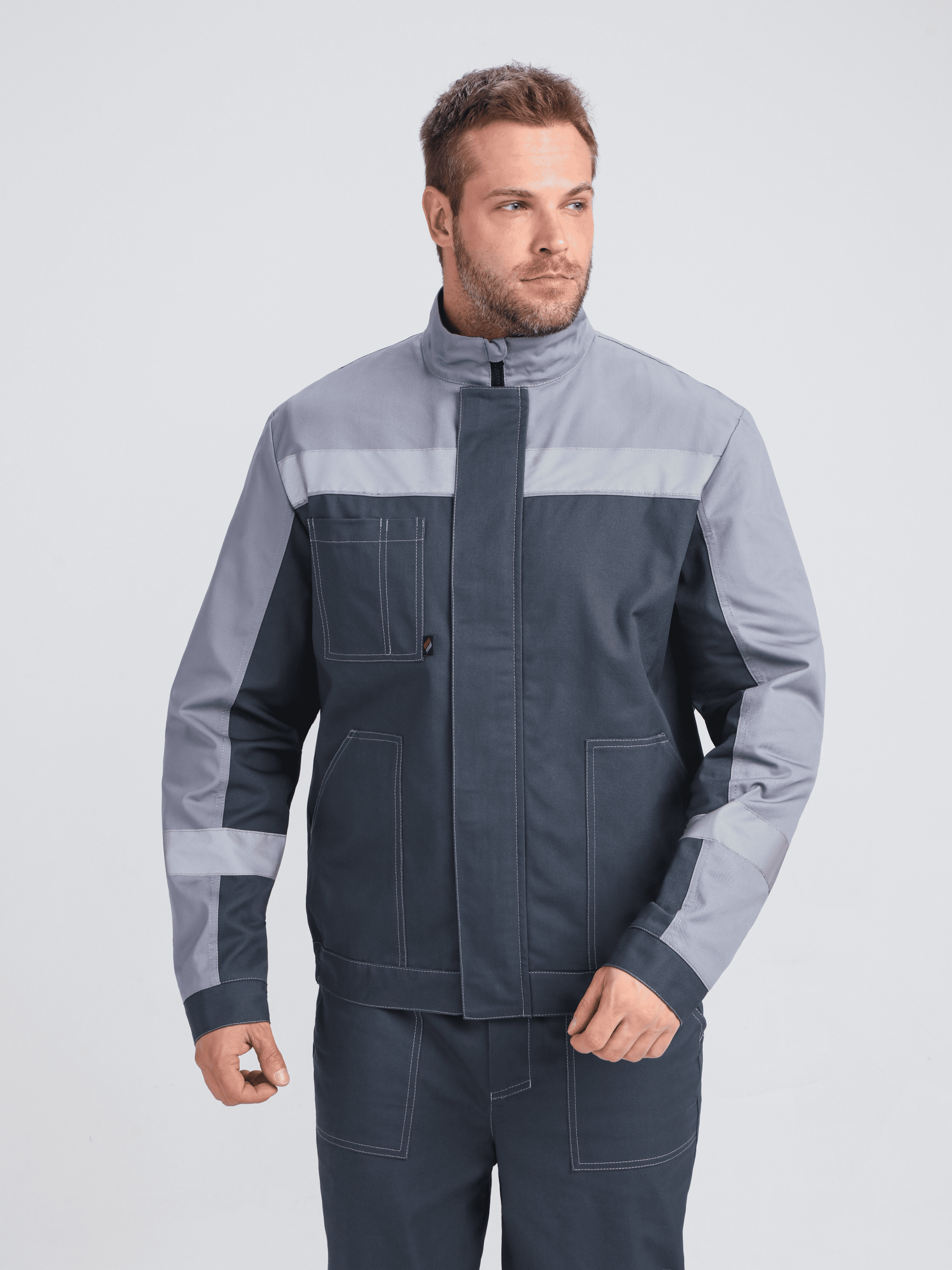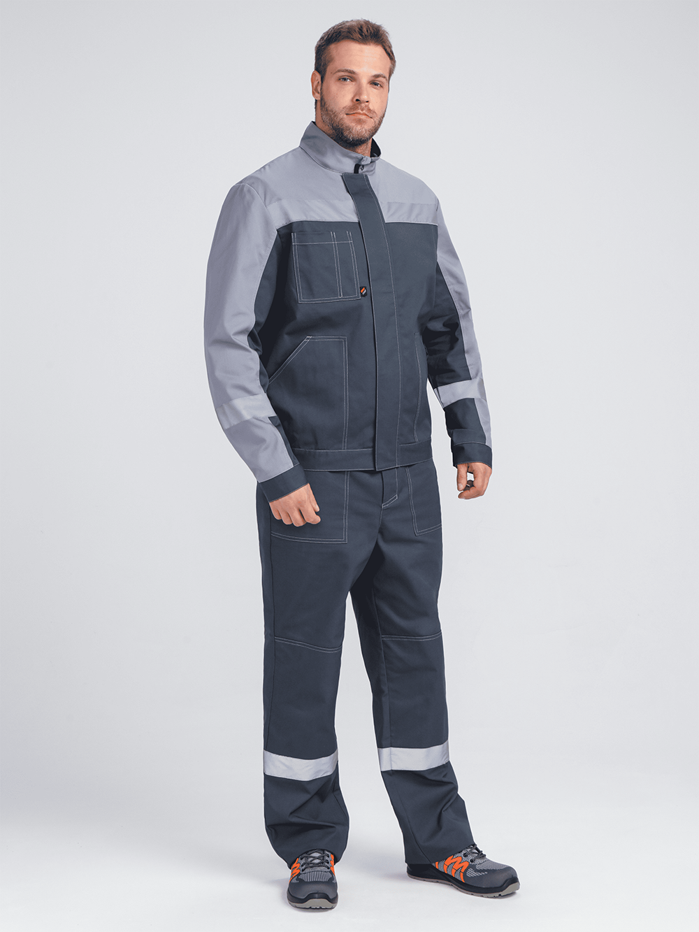- Широкая светоотражающая полоса по низу кокеток и на рукавах для безопасности