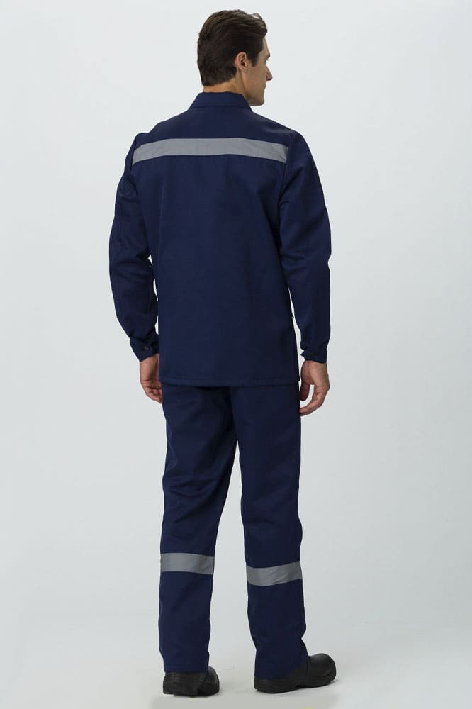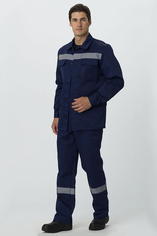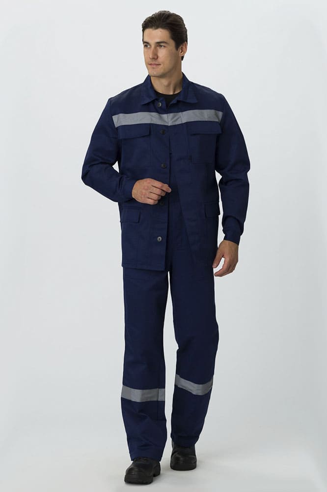 Рабочий костюм мужской «Экспертный-Люкс СОП», изготовленный в соответствии с ГОСТ, включает в себя два предмета: рабочая мужская куртка и полукомбинезон рабочий. Спецодежда оснащена широкими светоотражающими полосами 50 мм для безопасной работы в местах с плохим освещением. За счет удлиненной конструкции куртка защищает от переохлаждения поясничный отдел. В нижних и нагрудных карманах предусмотрены клапаны на липучке, препятствующие потере важных расходников и записей. Куртка застегивается на пуговицы, удобна и практична. Рабочий полукомбинезон прямого кроя подходит мужчинам разной комплекции, т.к. оснащен бретелями с регулировкой по длине, поясом на резинке и может дополняться широким ремнем. На груди полукомбинезона располагается закрывающийся на липучку карман, гульфик застегивается на пуговицы. Униформа дополняется изнаночной этикеткой для указания ФИО.
