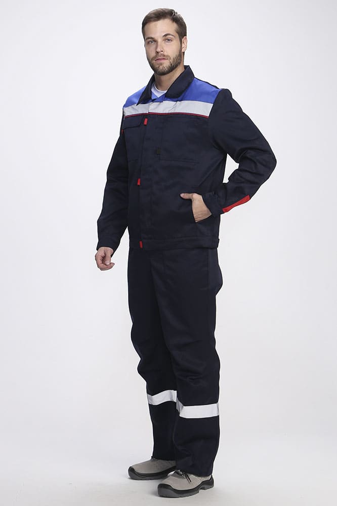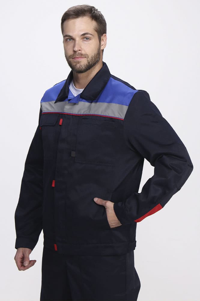 Рабочий костюм мужской «Фаворит-2 СОП» состоит из двух элементов: мужская рабочая куртка + полукомбинезон рабочий. Спецодежда мужская оснащена широкими светоотражающими полосами 50 мм по цветной кокетке, благодаря чему подходит для работы в местах с плохим освещением. Костюм с анатомическим кроем коленей и рукавов обеспечивает свободу движений. Униформа дополняется удобными карманами с клапаном и отделением для ручки как на куртке, так и полукомбинезоне. Куртка прямого кроя застегивается на скрытую молнию. Для быстрого расстегивания предусмотрены паты. Благодаря расширительной складке на спине куртка удобна в работе, а усиление на локтях препятствует истиранию материала и обеспечивает долгий период эксплуатации. Рабочий полукомбинезон на бретелях с регулировкой по длине и поясом на резинке отлично садится по фигуре и обеспечивает комфортную работу.