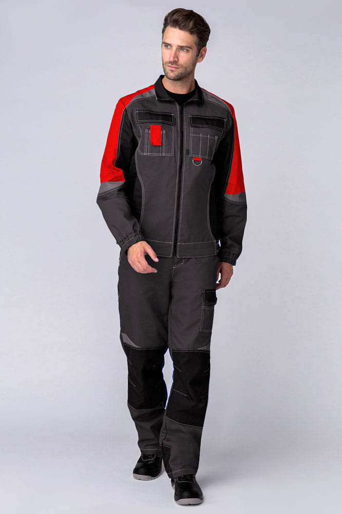 Костюм мужской рабочий «Формула» изготовлен в соответствии с ГОСТ и включает в себя два предмета: рабочая куртка мужская + полукомбинезон. Укороченная куртка удобно застегивается на молнию, оснащена поясом с регулировкой по ширине. Для безопасной работы в местах с плохим освещением предусмотрены светоотражающие полосы. Благодаря яркой контрастной отделке рабочая форма заметна издалека даже днем. Боковые и нагрудные карманы с клапаном на липучке предназначены для записей и мелочей. Полукомбинезон усилен дополнительной тканью в районе коленей и шагового шва снизу. В многозональных карманах разного типа и размера удобно хранить инструменты и расходники. Комфортную работу в неудобных позах обеспечивает анатомический крой коленей и локтей, а также возможность размещения ЭВА-вкладышей в карманы-наколенники.