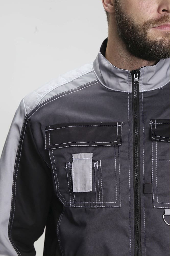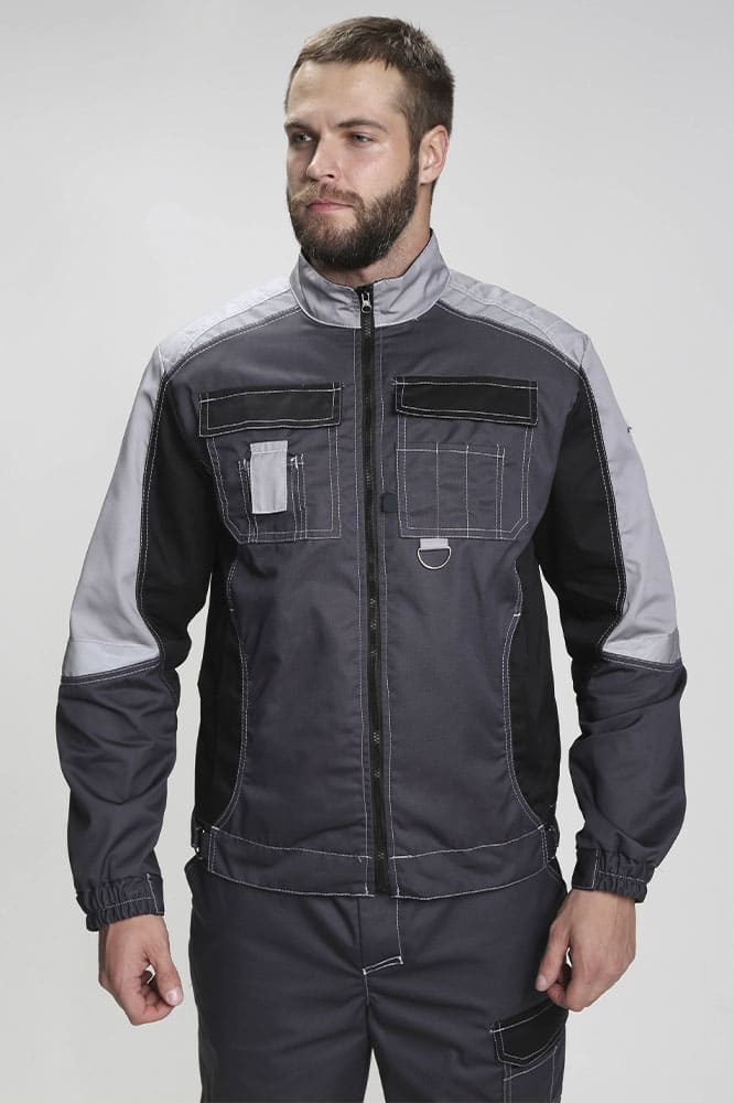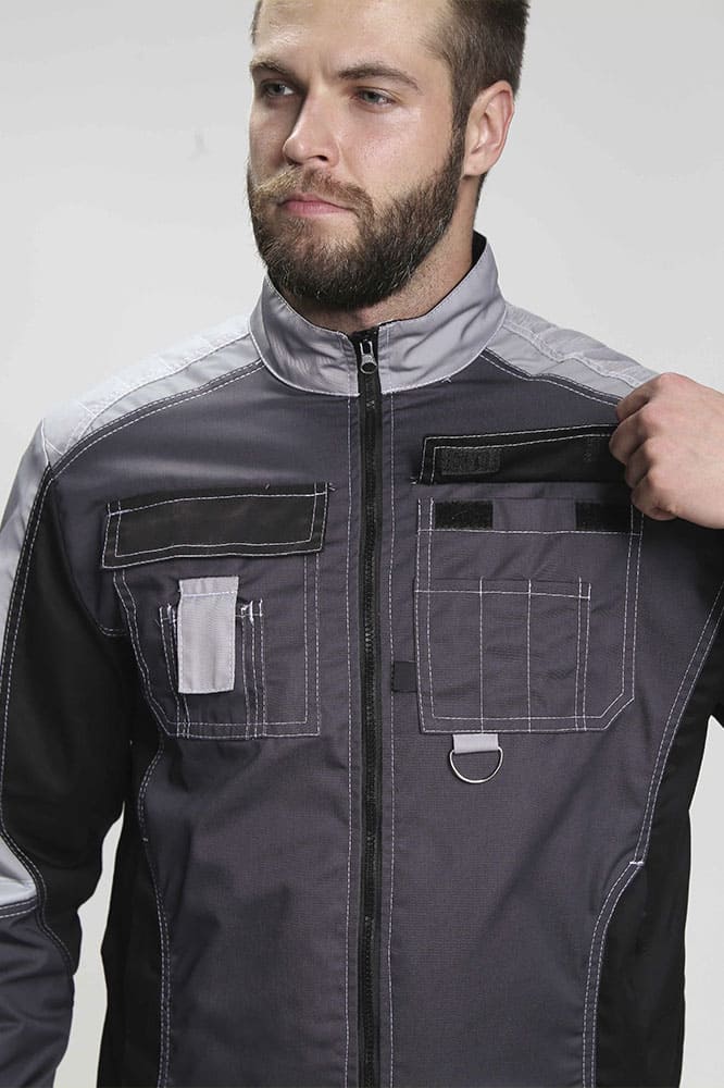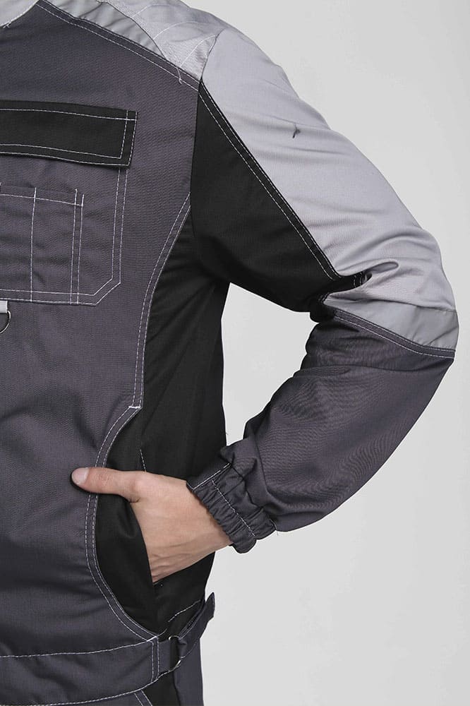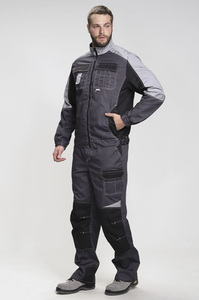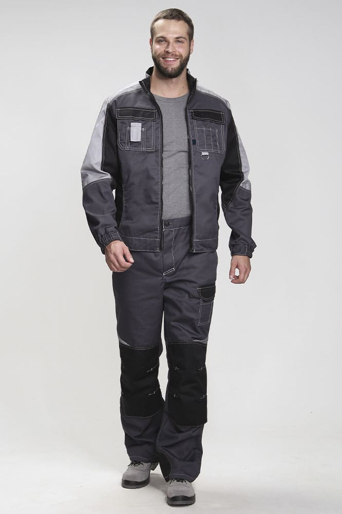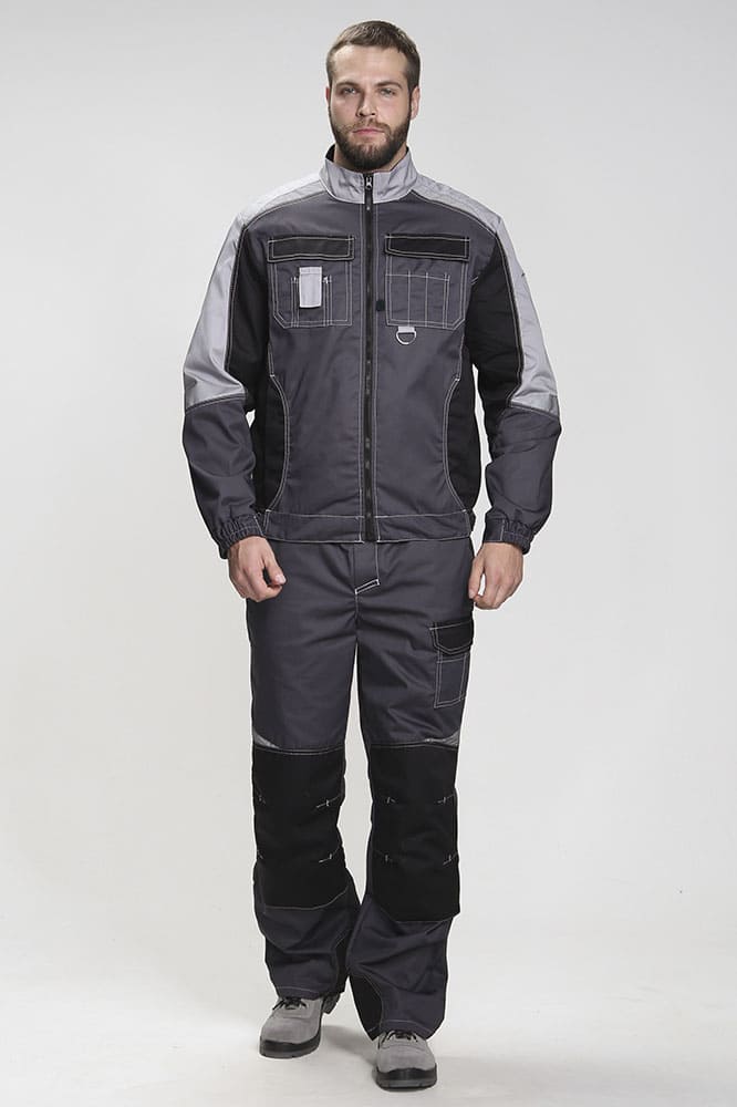 Костюм мужской рабочий «Формула» изготовлен в соответствии с ГОСТ и включает в себя два предмета: рабочая куртка мужская + брюки рабочие. Укороченная куртка удобно застегивается на молнию, оснащена поясом с регулировкой по ширине. Для безопасной работы в местах с плохим освещением предусмотрены светоотражающие полосы. Благодаря яркой контрастной отделке рабочая форма заметна издалека даже днем. Боковые и нагрудные карманы с клапаном на липучке предназначены для записей и мелочей. Рабочие брюки усилены дополнительной тканью в районе коленей и шагового шва снизу. В многозональных карманах разного типа и размера удобно хранить инструменты и расходники. Комфортную работу в неудобных позах обеспечивает анатомический крой коленей и локтей, а также возможность размещения ЭВА-вкладышей в карманы-наколенники.