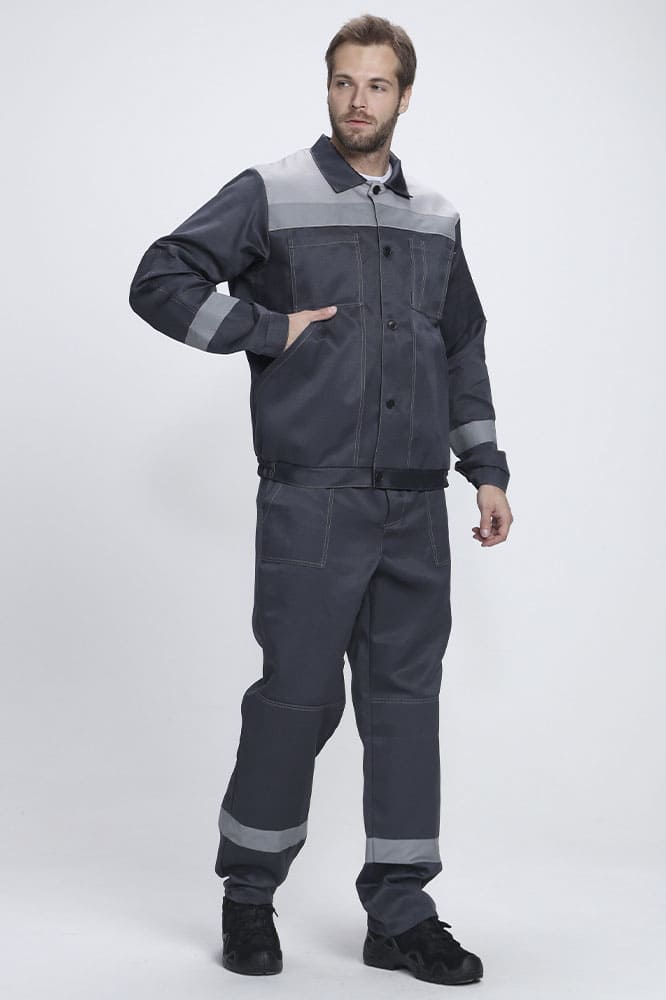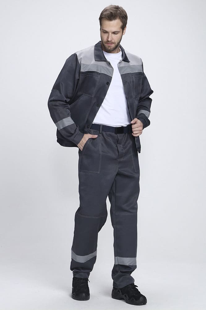 ХИТ ПРОДАЖ! Рабочий костюм «Легион-1 СОП», изготовленный в соответствии с ГОСТ, включает в себя два предмета: рабочая мужская куртка на пуговицах и брюки рабочие. Спецодежда мужская оснащена широкими светоотражающими полосами для безопасной работы в местах с плохим освещением. Благодаря усилительным накладкам в области колен и локтей, а также усилению плечевого и шагового шва, униформа отличается повышенной надежностью и износостойкостью. Рабочая куртка прямого кроя с регулировкой по объему на поясе не стесняет движения, очень удобна в работе. Для хранения записей предусмотрен нагрудный карман с отделением под ручку