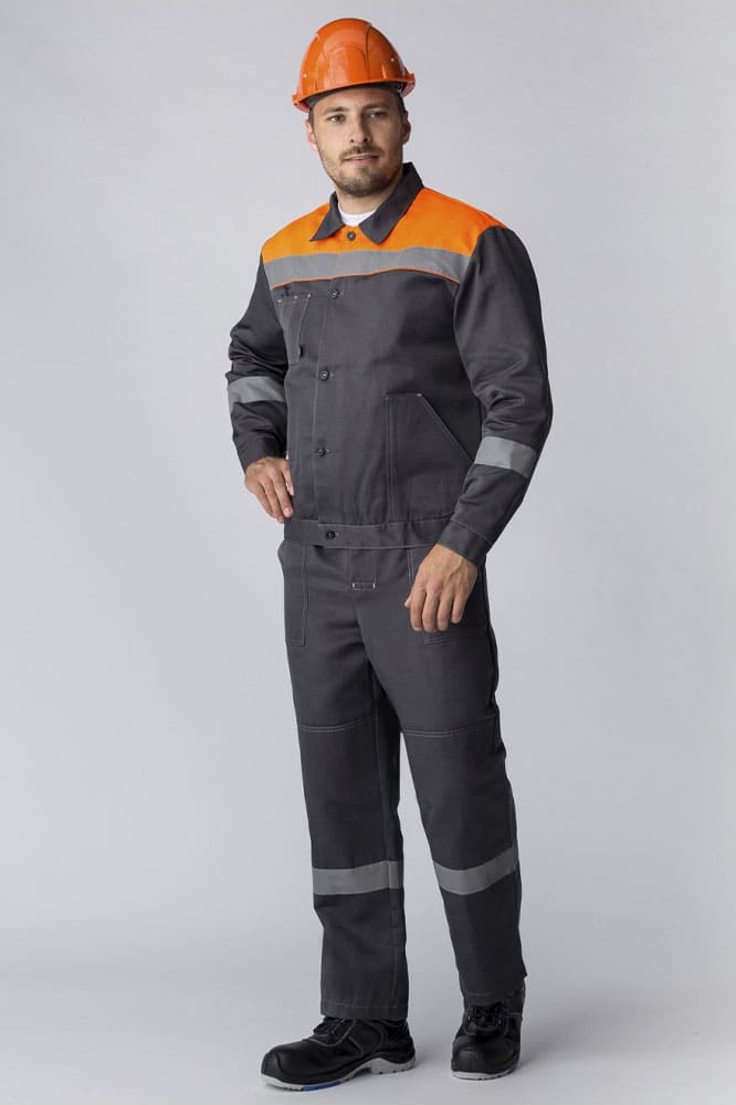 Светоотражающая полоса 50 мм по кокеткам спинки и полочек, рукавам, низу брюк.