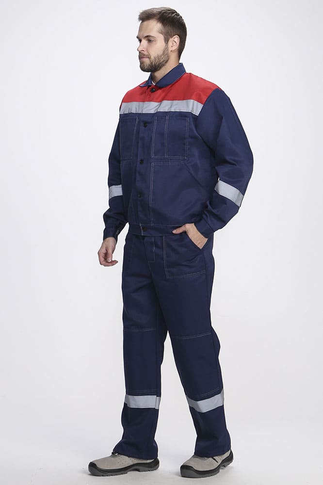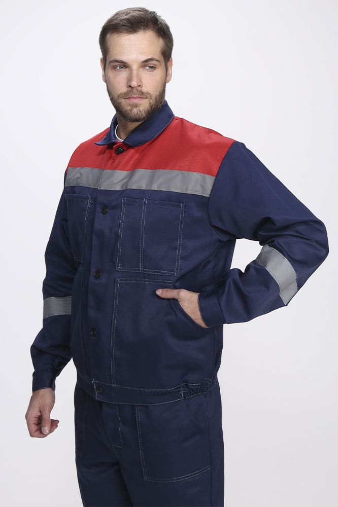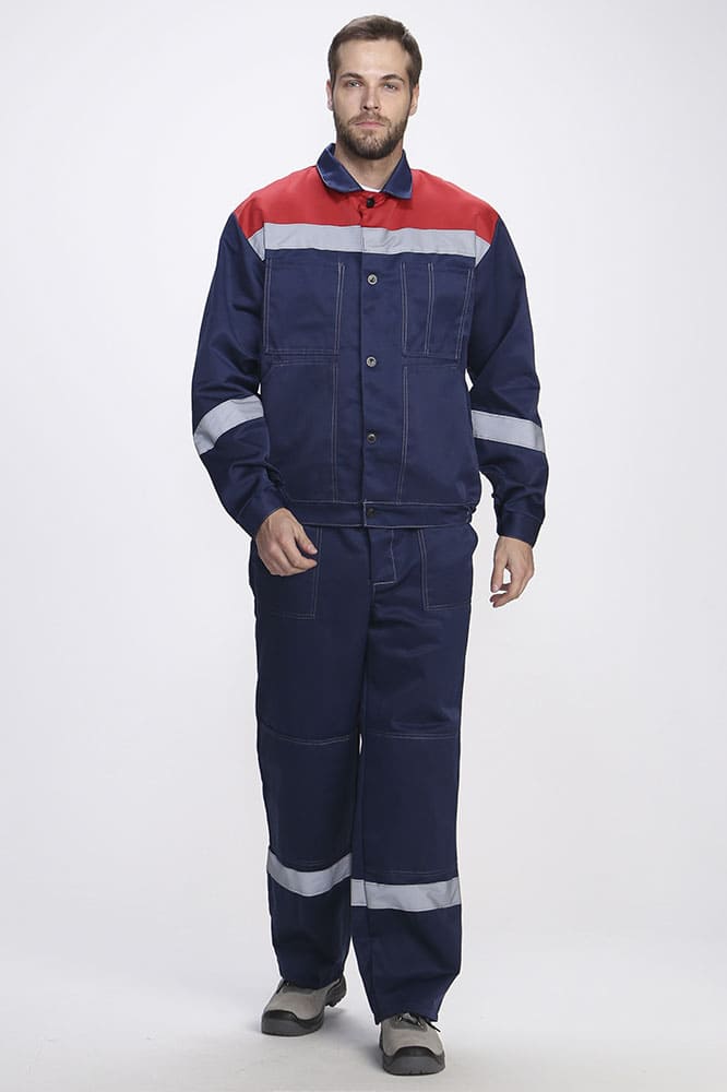 Светоотражающая полоса 50 мм по кокеткам спинки и полочек, рукавам, низу брюк.