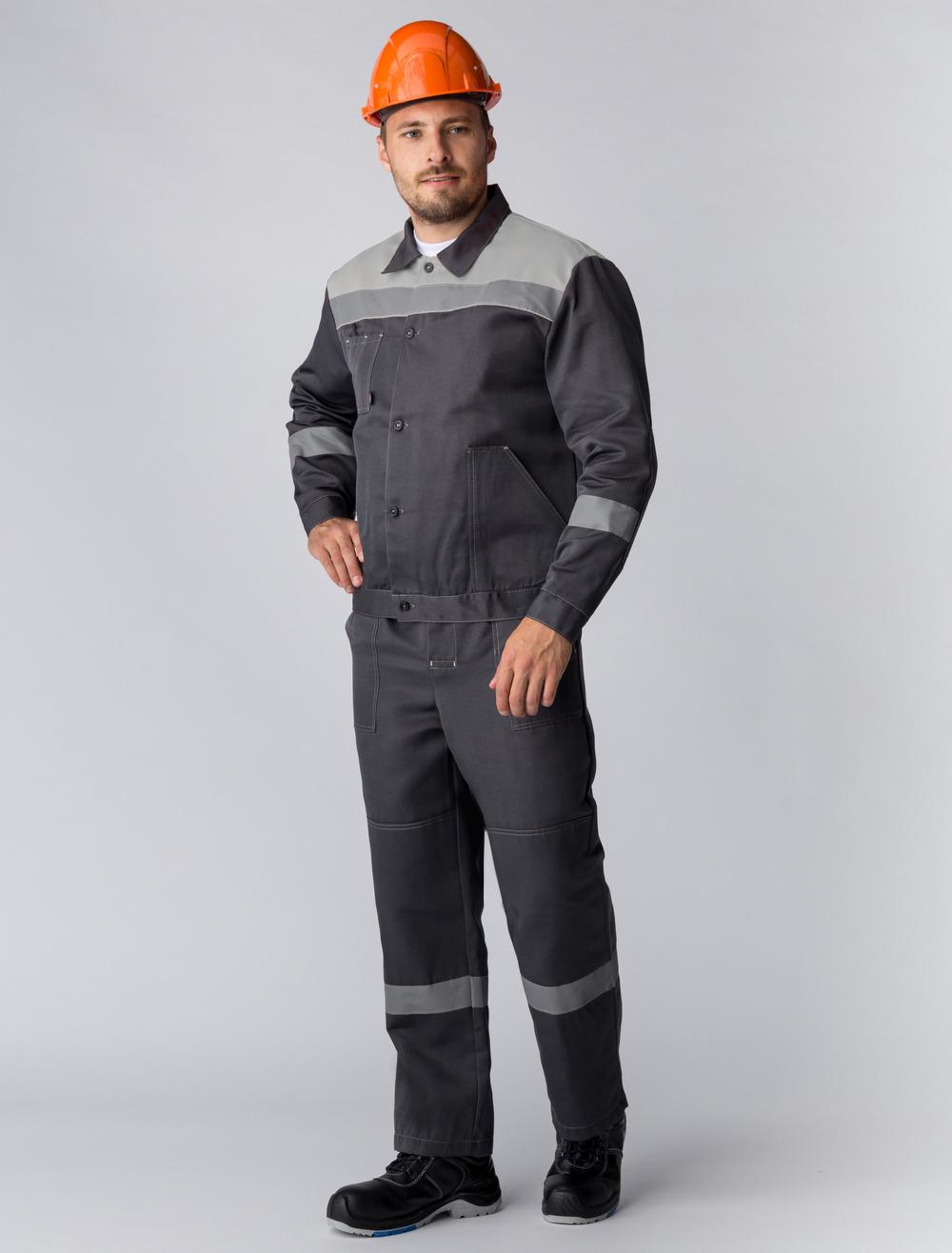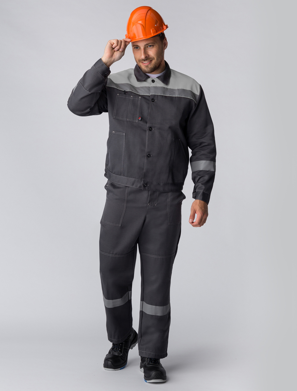 ХИТ ПРОДАЖ! Рабочий костюм «Легион-2 СОП», изготовленный в соответствии с ГОСТ, включает в себя два предмета: рабочая мужская куртка на пуговицах и полукомбинезон рабочий. Спецодежда мужская оснащена широкими светоотражающими полосами для безопасной работы в местах с плохим освещением. Благодаря усилительным накладкам в области колен и локтей, а также усилению плечевого и шагового шва, униформа отличается повышенной надежностью и износостойкостью. Рабочая куртка прямого кроя с регулировкой по объему на поясе не стесняет движения, очень удобна в работе. Для хранения записей предусмотрен нагрудный карман с отделением под ручку. Рабочий полукомбинезон дополняется бретелями с регулировкой по длине и кулиской на резинке, благодаря чему подходит мужчинам разной комплекции. На груди располагается карман, гульфик застегивается на пуговицы.