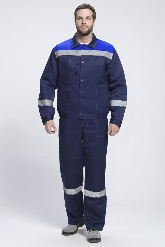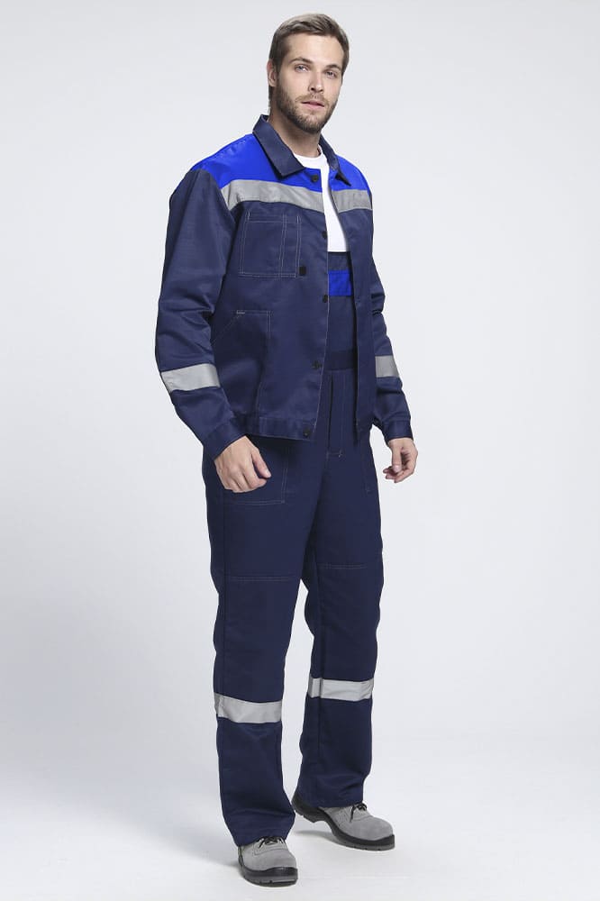 ХИТ ПРОДАЖ! Рабочий костюм «Легион-2 СОП», изготовленный в соответствии с ГОСТ, включает в себя два предмета: рабочая мужская куртка на пуговицах и полукомбинезон рабочий. Спецодежда мужская оснащена широкими светоотражающими полосами для безопасной работы в местах с плохим освещением. Благодаря усилительным накладкам в области колен и локтей, а также усилению плечевого и шагового шва, униформа отличается повышенной надежностью и износостойкостью. Рабочая куртка прямого кроя с регулировкой по объему на поясе не стесняет движения, очень удобна в работе. Для хранения записей предусмотрен нагрудный карман с отделением под ручку. Рабочий полукомбинезон дополняется бретелями с регулировкой по длине и кулиской на резинке, благодаря чему подходит мужчинам разной комплекции. На груди располагается карман, гульфик застегивается на пуговицы.
