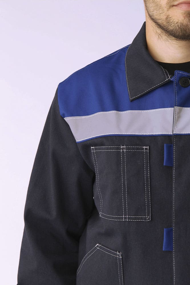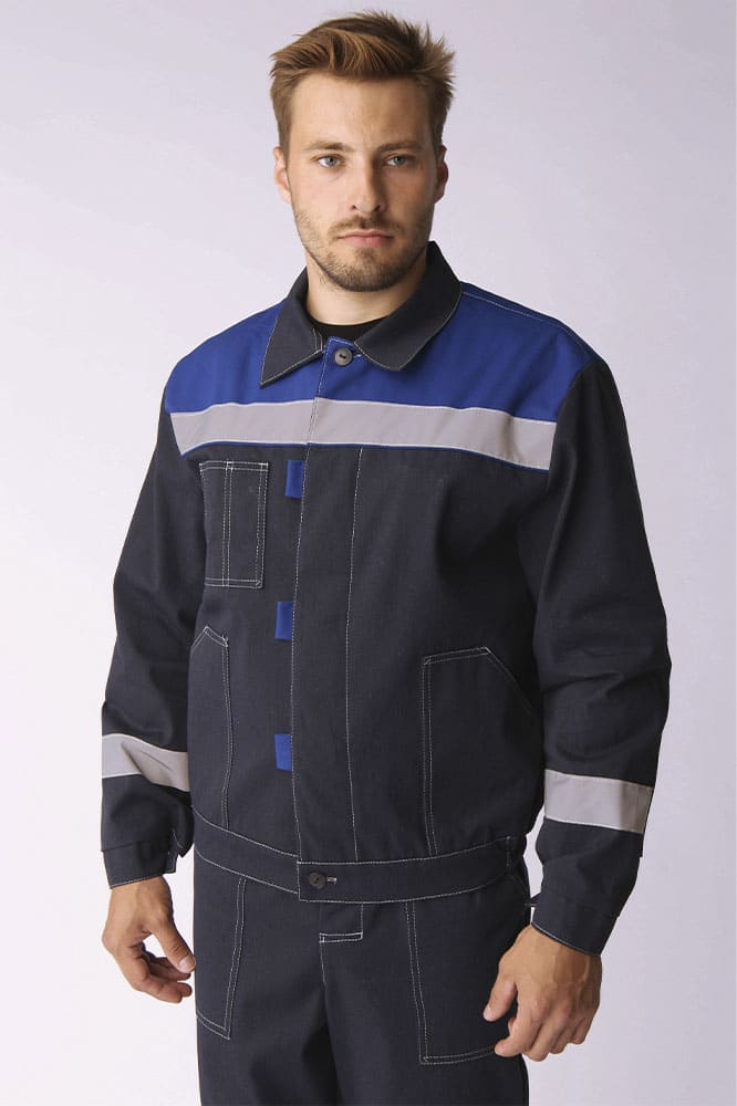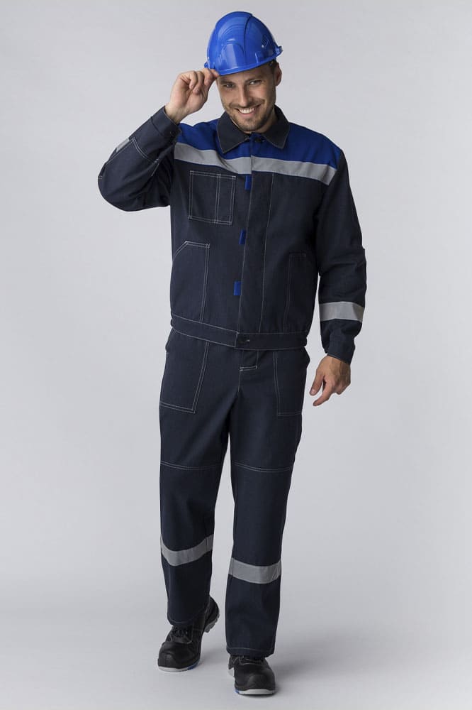 Костюм испытан в реальных рабочих условиях и получил положительные отзывы от работников разных специальностей. Благодаря высокому содержанию хлопка, ткань дышит, хорошо впитывает влагу и отводит ее от тела. Высокопрочные полиэфирные волокна обеспечивают прочность, малоусадочность и легкость в уходе. Накладные детали настрочены двойной строчкой.