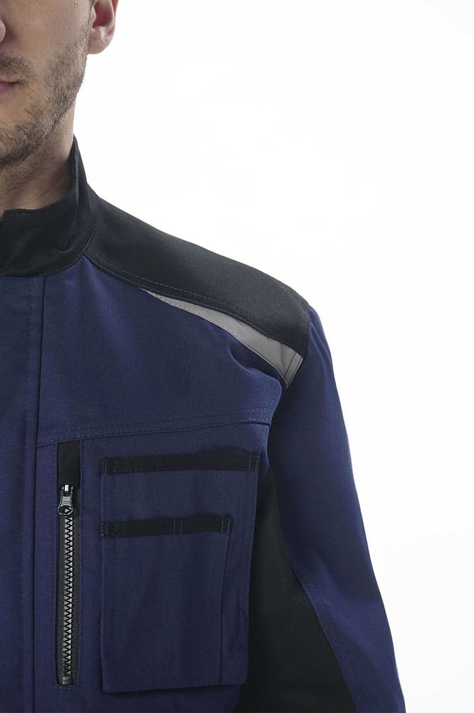 - на левый нагрудный накладной карман настрачивается малый накладной карман с двумя зональными отделениями и прорезными петлями