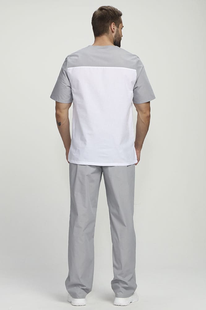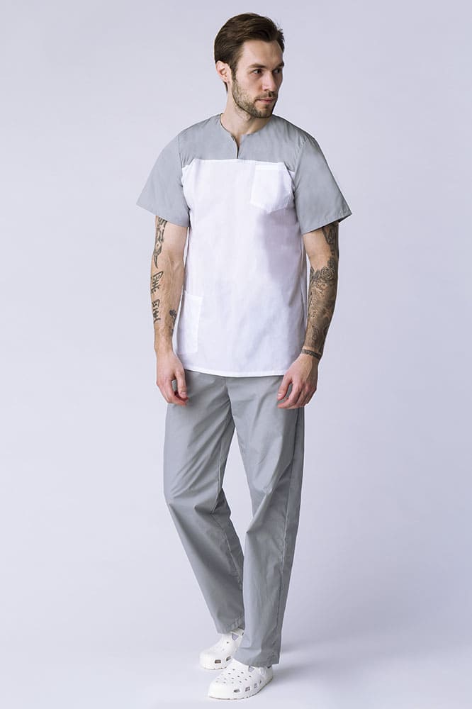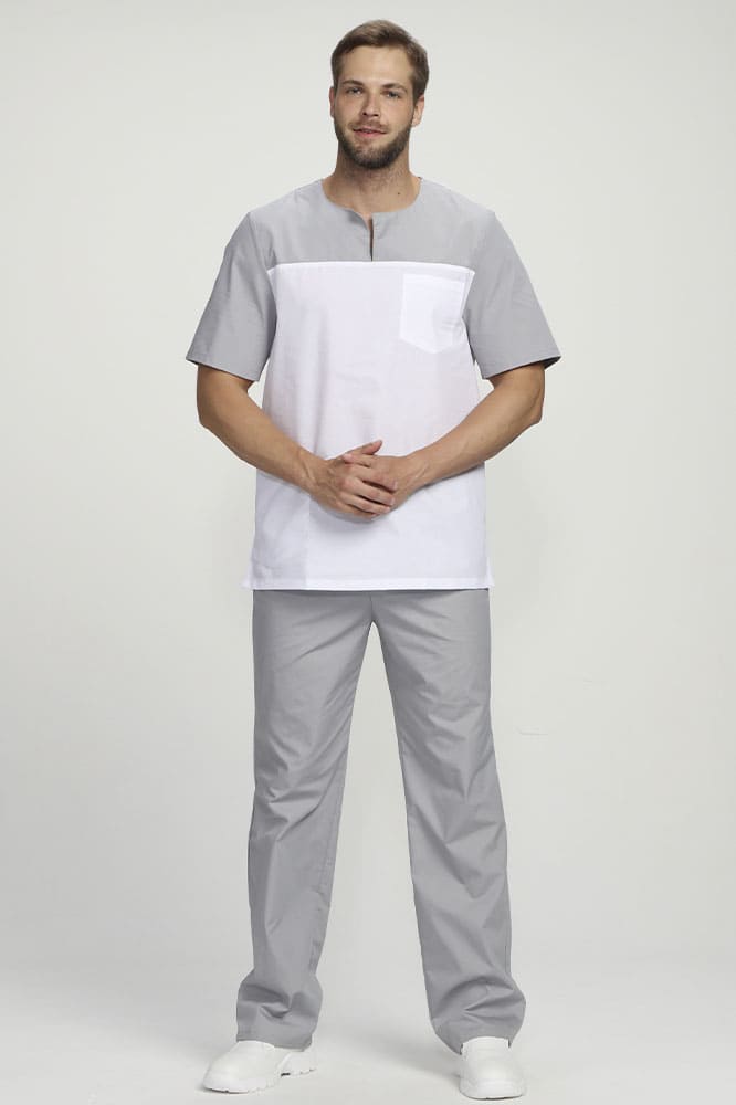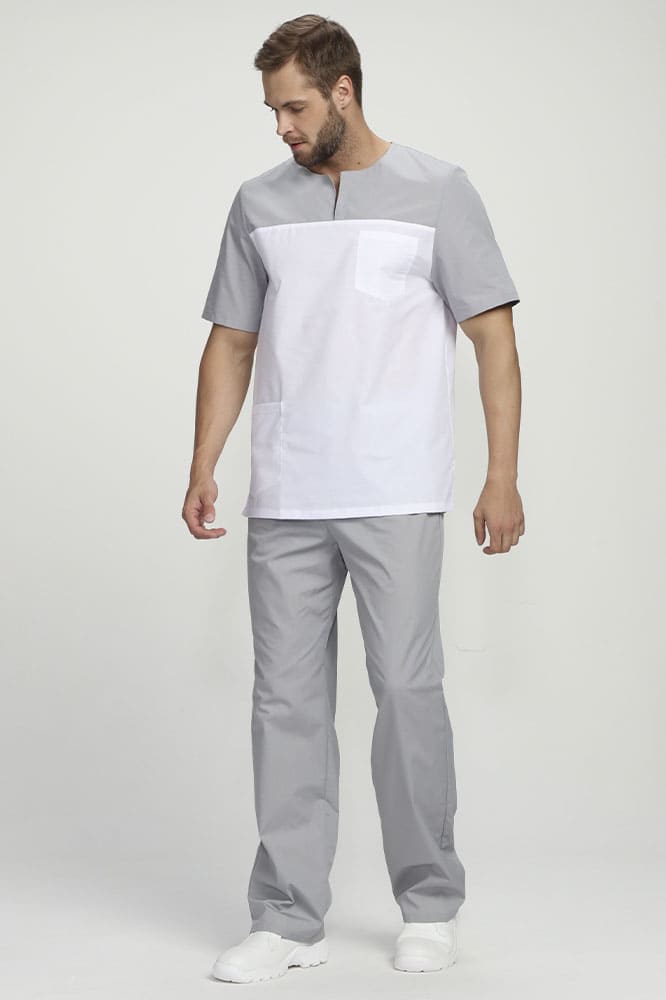 Медицинский костюм мужской «Стоматолог» разработан специально для сотрудников медицинских учреждений, стоматологий или массажных кабинетов. Мужская одежда для врача состоит из двух предметов: рубашка медицинская + брюки мужские. Спецодежда изготовлена в соответствии с ГОСТ, надежно защищает от общих производственных загрязнений. Удлиненная блуза свободного кроя подходит мужчинам разной комплекции и обеспечивает свободу движений. Блузка легко надевается и снимается благодаря удобному V-образному вырезу воротника с центральным разрезом. Для хранения мелочей предусмотрены два кармана: боковой и нагрудный. Рабочие брюки на резинке удобны и долговечны. Прямой силуэт и контрастный цвет брюк замечательно гармонируют с верхом костюма. Благодаря коротким рукавам рубашки и легкому материалу медицинская одежда комфортна в работе даже при высоких температурах.