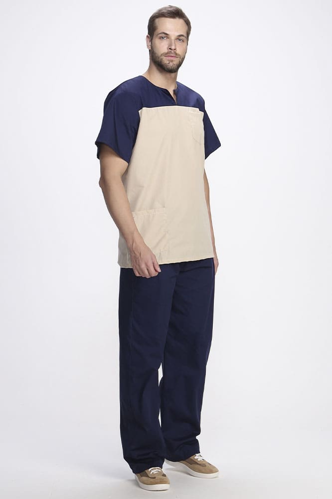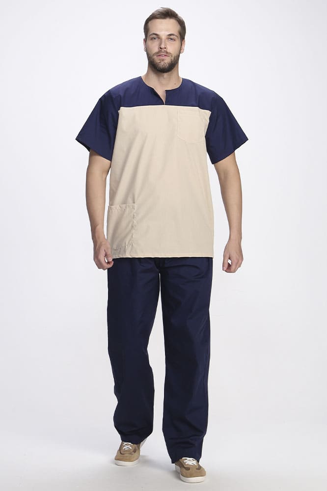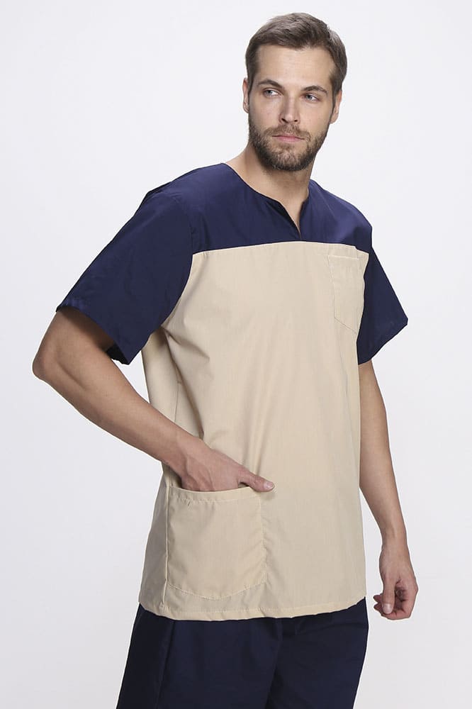 Медицинский костюм мужской «Стоматолог» разработан специально для сотрудников медицинских учреждений, стоматологий или массажных кабинетов. Мужская одежда для врача состоит из двух предметов: рубашка медицинская + брюки мужские. Спецодежда изготовлена в соответствии с ГОСТ, надежно защищает от общих производственных загрязнений. Удлиненная блуза свободного кроя подходит мужчинам разной комплекции и обеспечивает свободу движений. Блузка легко надевается и снимается благодаря удобному V-образному вырезу воротника с центральным разрезом. Для хранения мелочей предусмотрены два кармана: боковой и нагрудный. Рабочие брюки на резинке удобны и долговечны. Прямой силуэт и контрастный цвет брюк замечательно гармонируют с верхом костюма. Благодаря коротким рукавам рубашки и легкому материалу медицинская одежда комфортна в работе даже при высоких температурах.