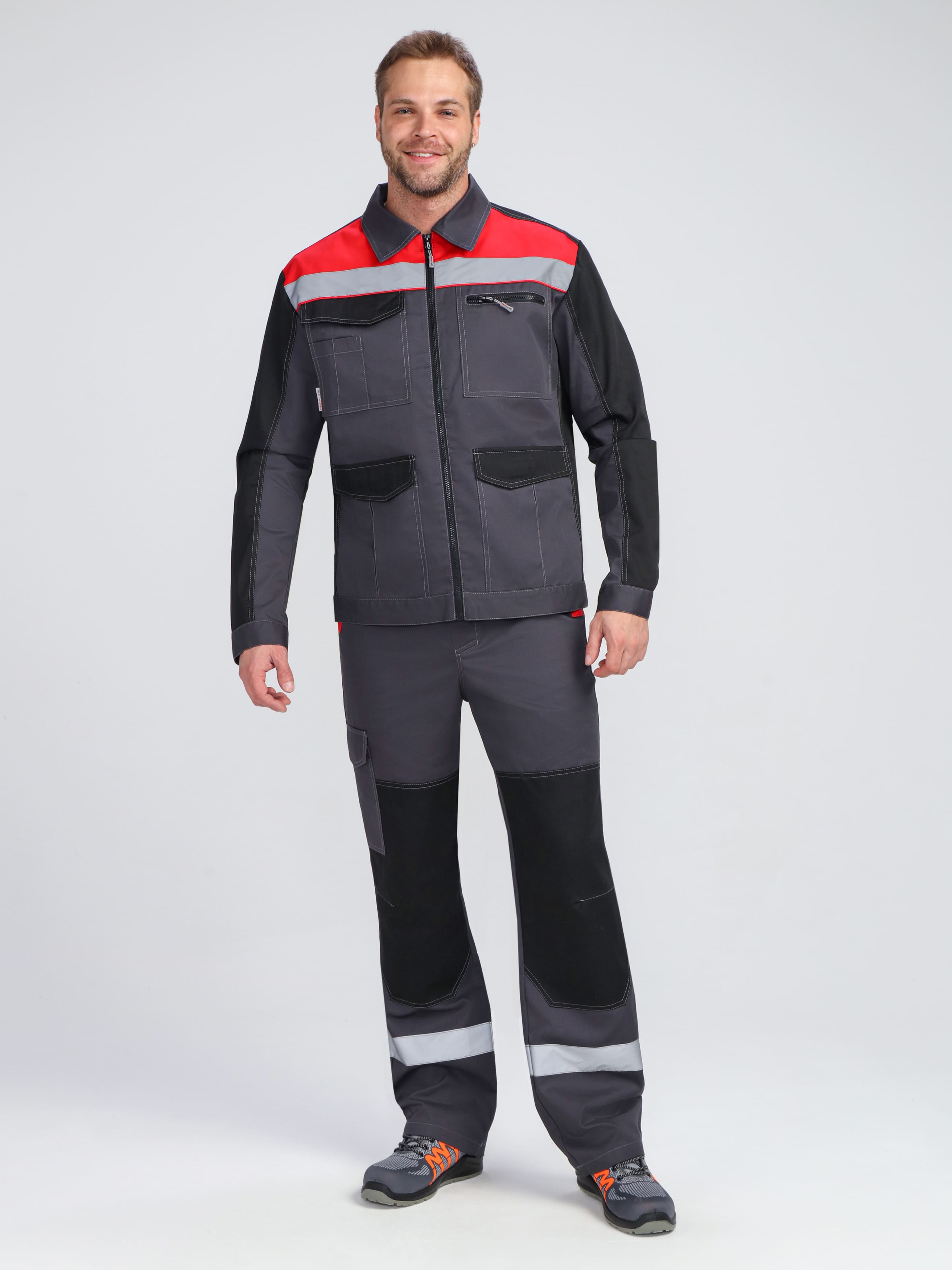 - Широкая светоотражающая полоса по низу кокеток для безопасности в темное время суток