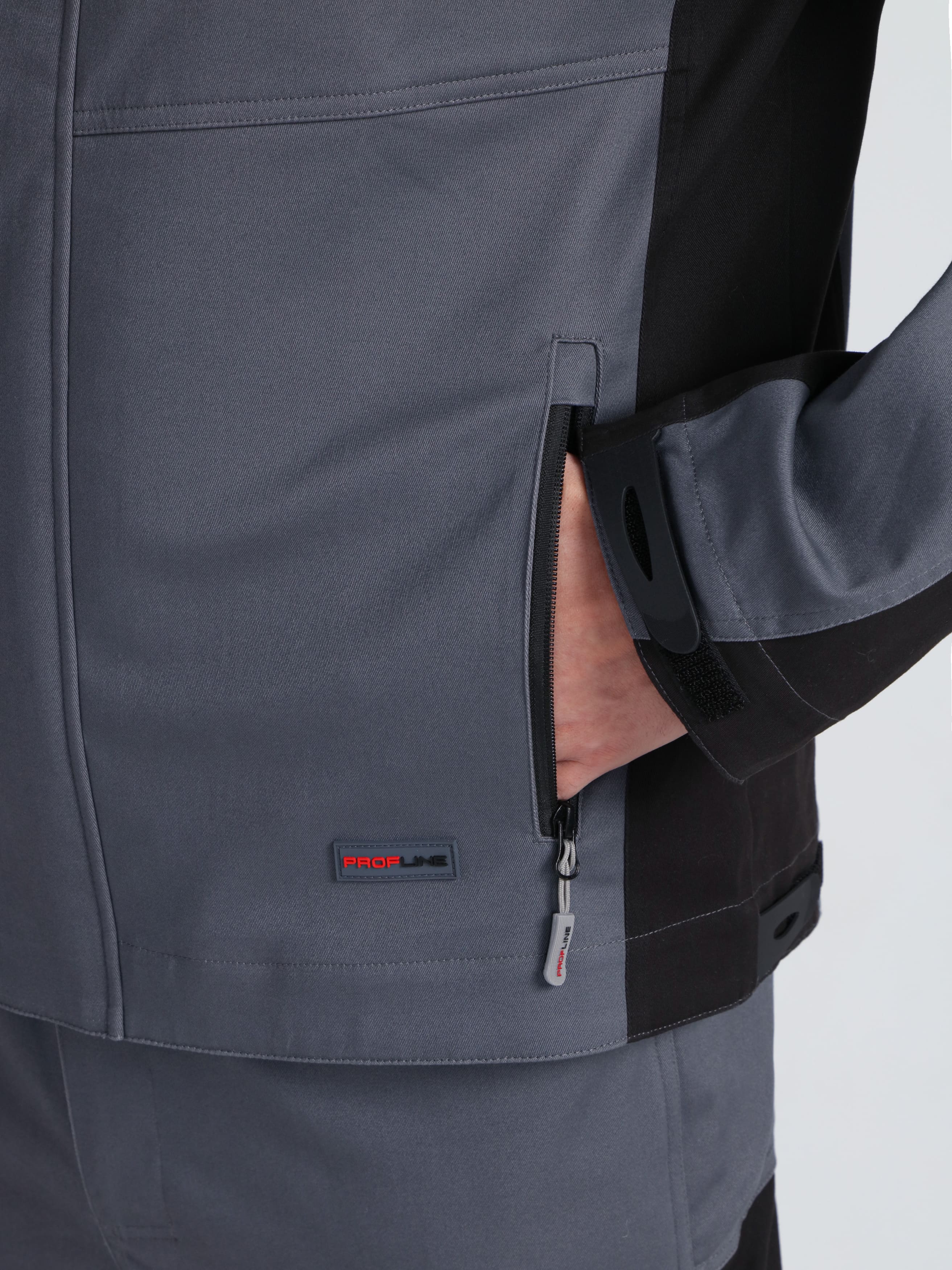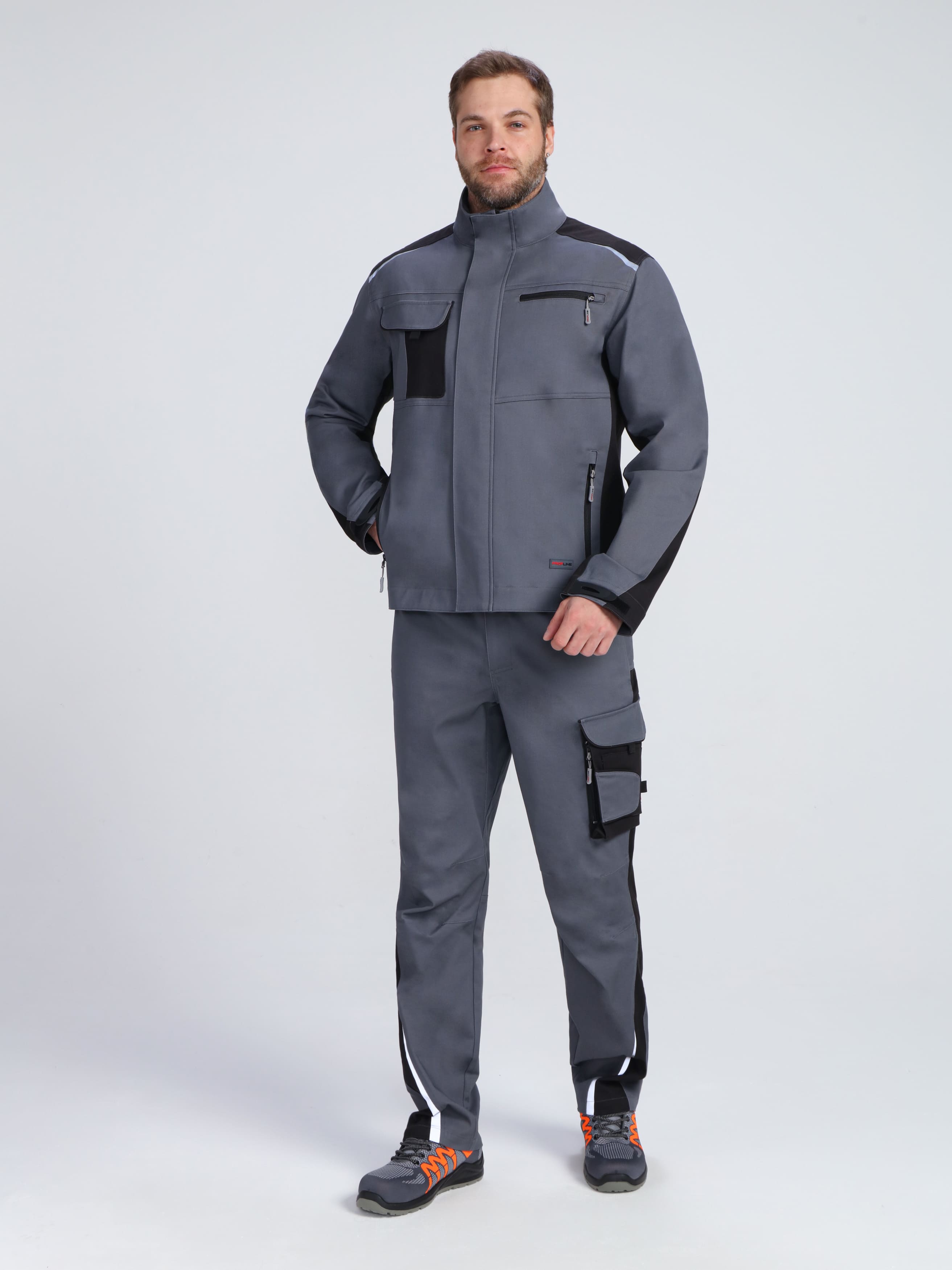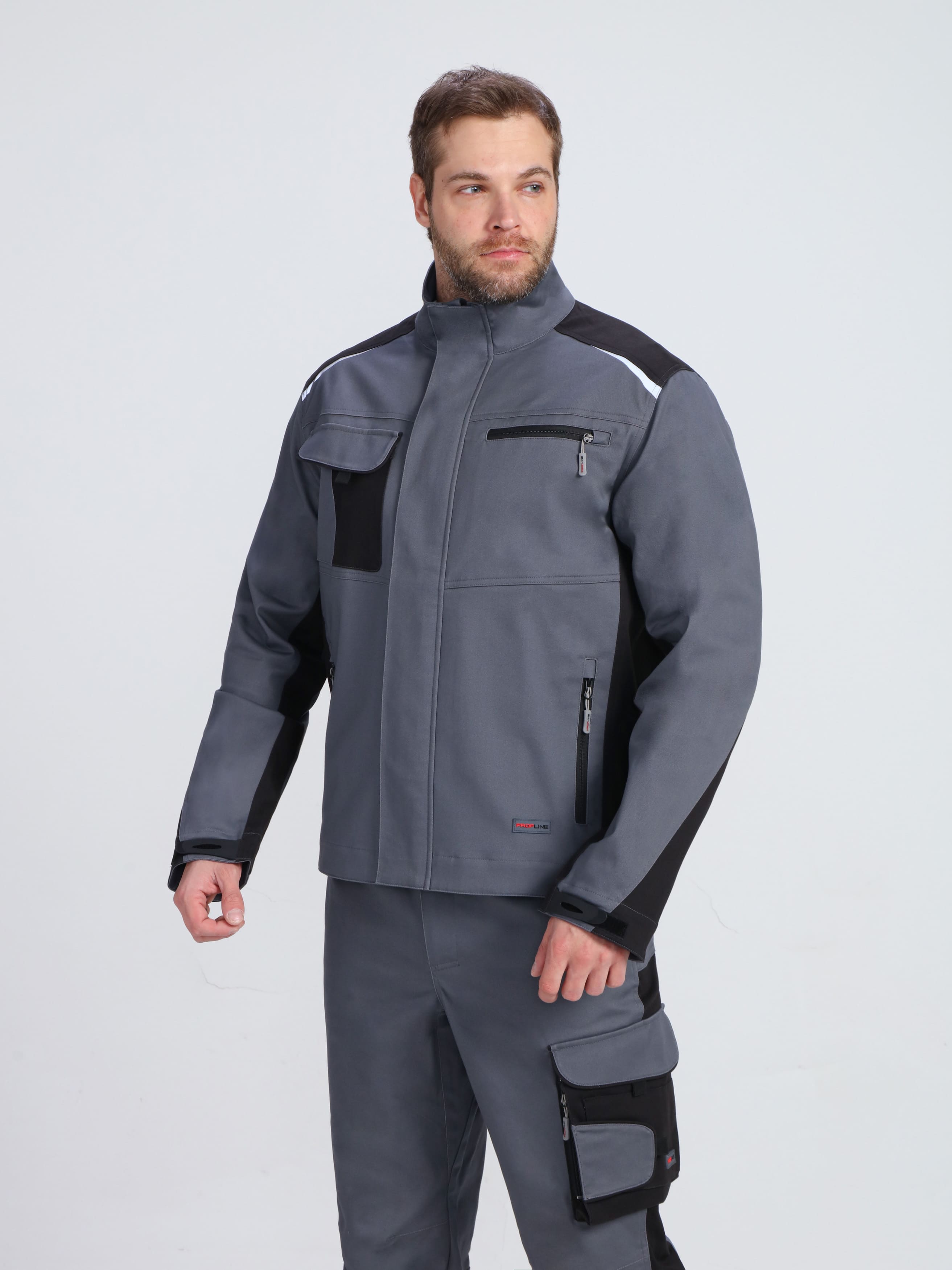 - Продуманная система карманов: 4 функциональных кармана, включая двухсекционный нагрудный с клапаном и петлей для бейджа, а также вертикальные прорезные с молнией для безопасного хранения