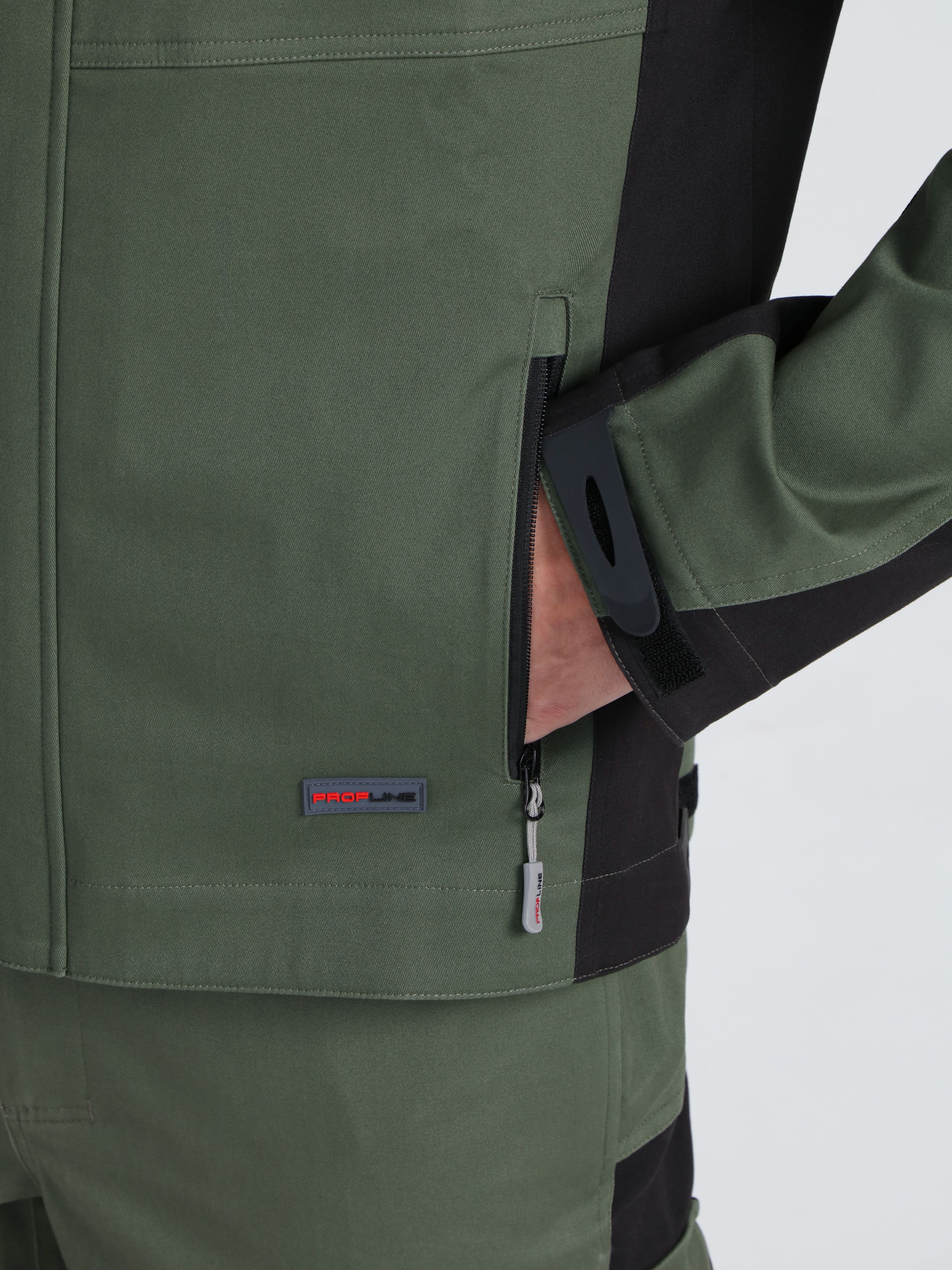 - Продуманная система карманов: 4 функциональных кармана, включая двухсекционный нагрудный с клапаном и петлей для бейджа, а также вертикальные прорезные с молнией для безопасного хранения