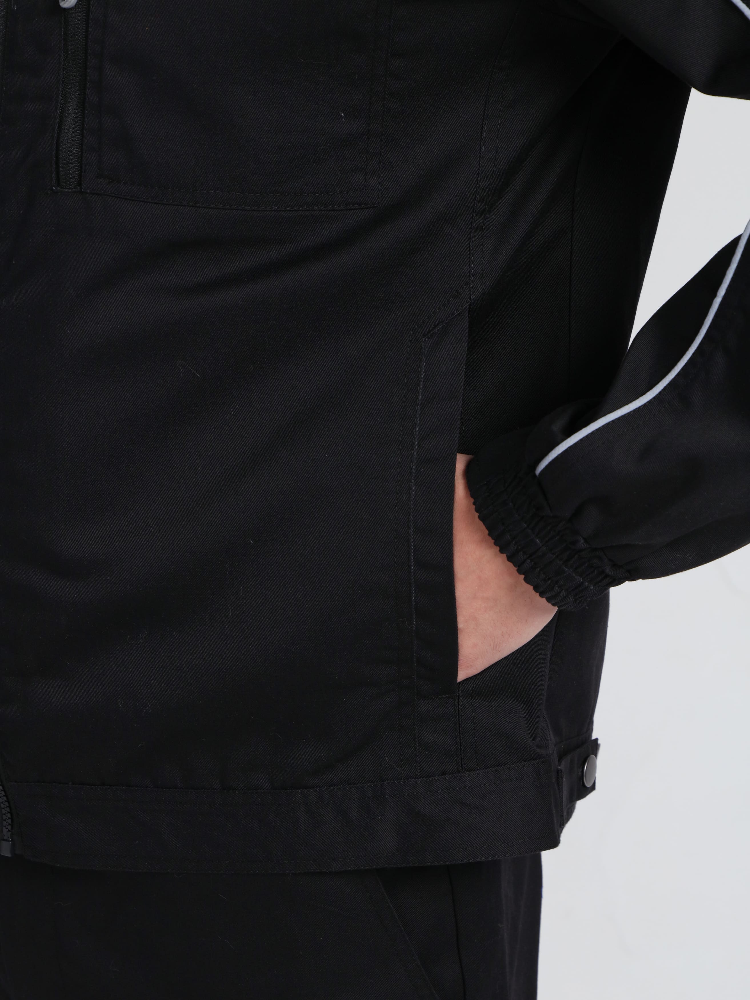 - Светоотражающие элементы расположены на плечевых кокетках, вставке на спинке и на рукавах, что обеспечивает повышенную видимость и безопасность