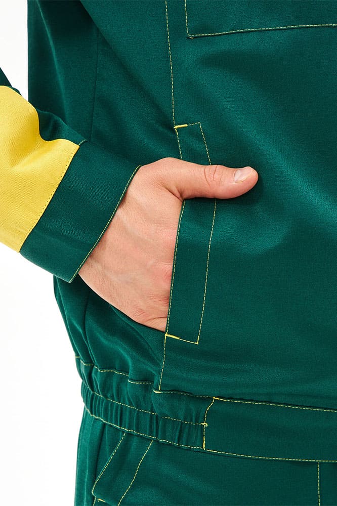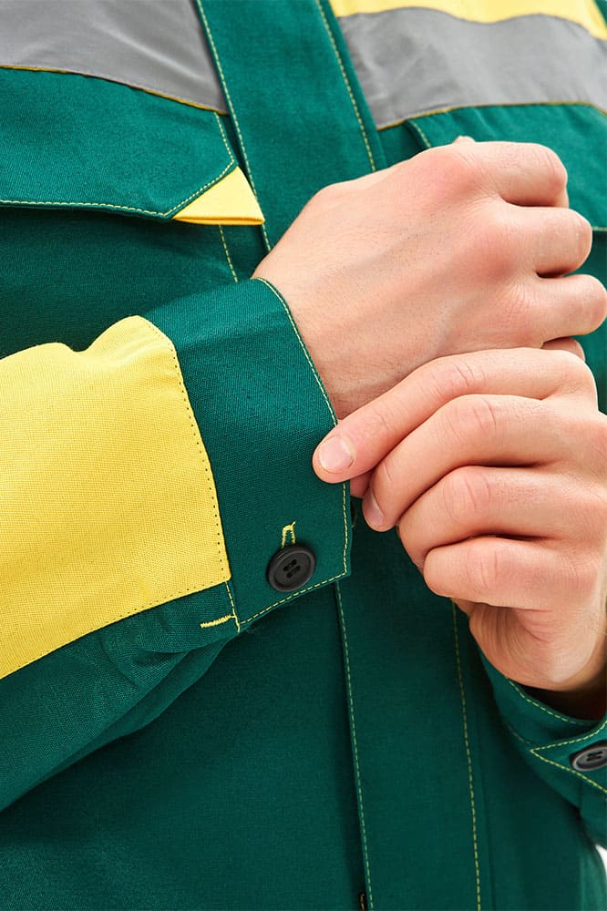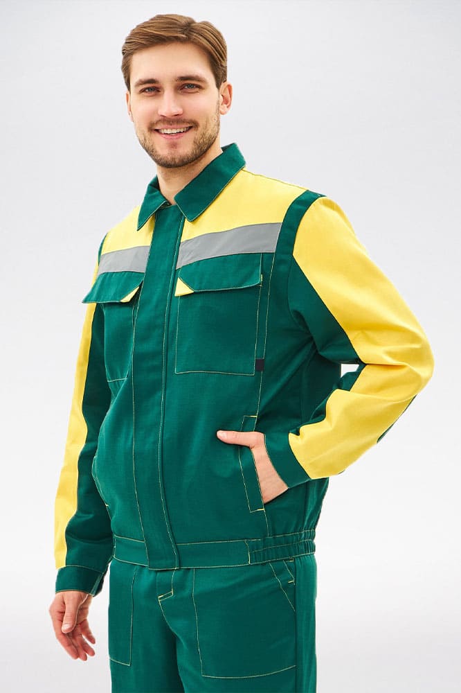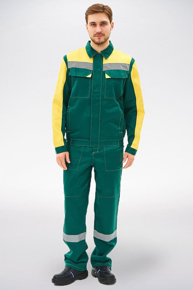Костюм мужской рабочий «Сфера» включает в себя два элемента: мужская рабочая куртка на скрытой молнии и полукомбинезон рабочий. Спецодежда оснащена широкими светоотражающими полосами 50 мм для безопасной работы в местах с плохим освещением и в темное время суток. Благодаря качественным материалам, усилению на коленях и локтях рабочий костюм отличается повышенной износостойкостью и долго сохраняет прекрасный внешний вид. Укороченная куртка с резинкой на поясе отлично садится по фигуре, не сковывает движения. В нагрудных карманах предусмотрены клапаны на липучке для удобного хранения важных расходников и записей. Рабочий полукомбинезон прямого кроя оснащен бретелями с регулировкой по длине и нагрудным карманом, закрывающимся на липучку. Униформа дополняется изнаночной этикеткой для указания ФИО.