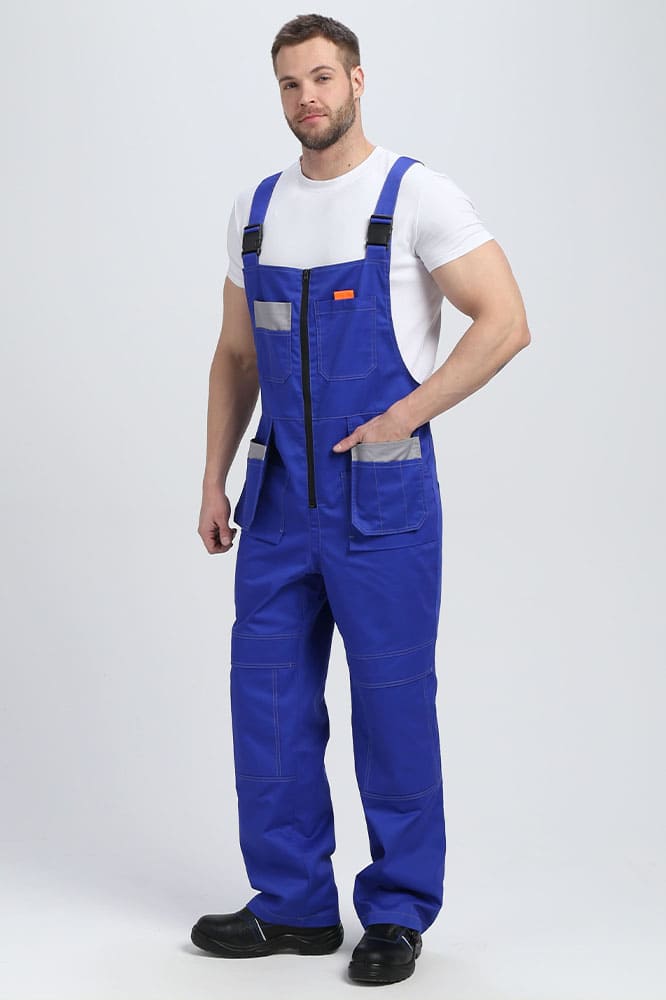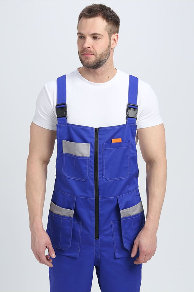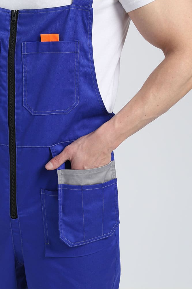 - на полукомбинезоне расположены 11 карманов разного размера и предназначения, в заднем кармане удобно хранить инструменты, а в передние с отлетным механизмом, можно сложить мелкие скобяные изделия, разделив их по сегментам