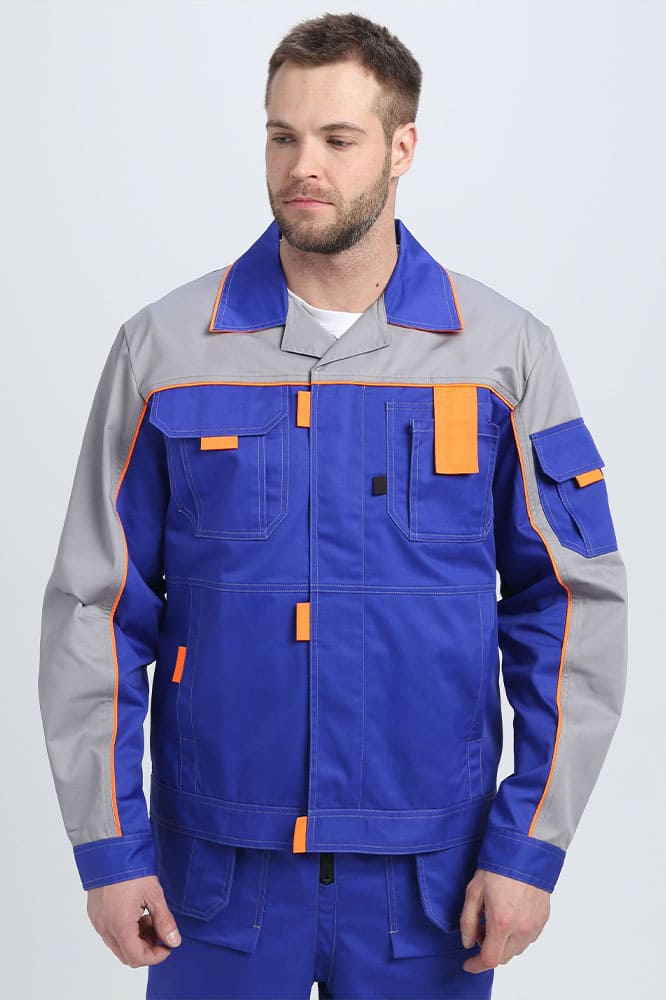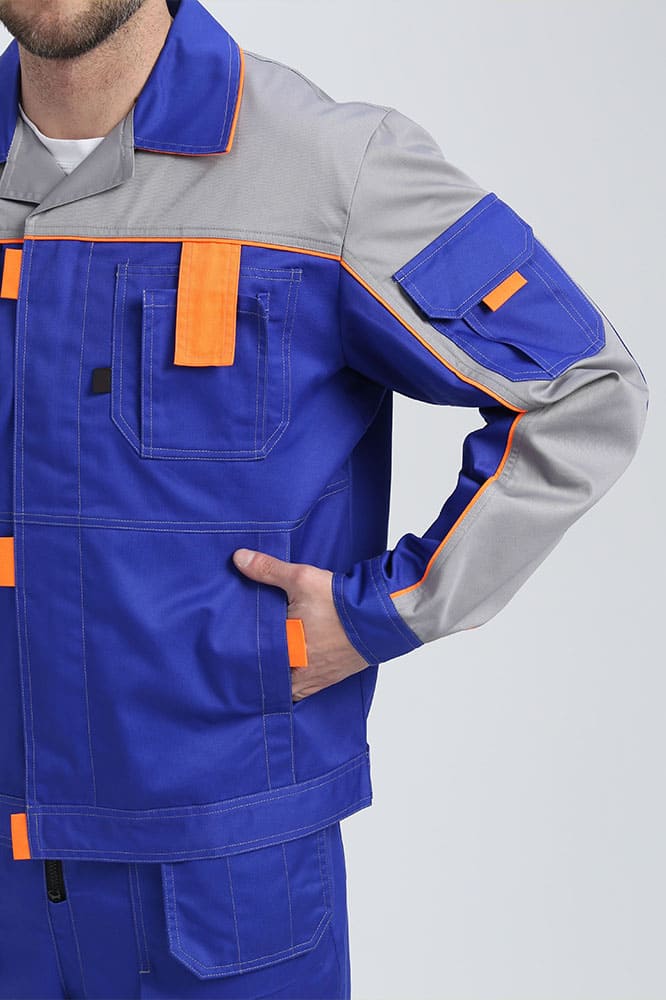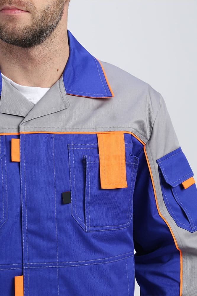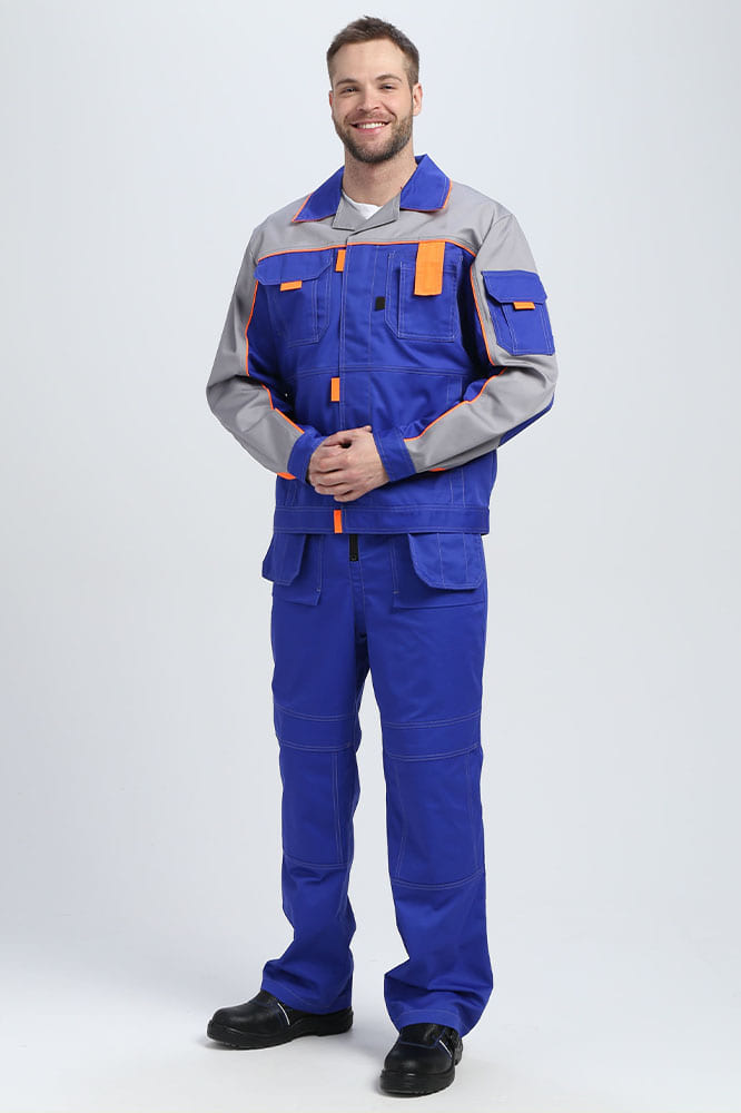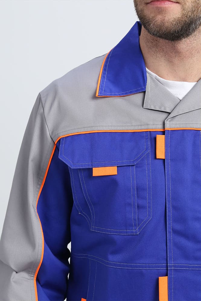 Костюм изготовлен из высокопрочной смесовой ткани. Улучшенная структура износостойкости материала обусловлена оптимальным содержанием хлопка и полиэстера, а так же саржевым переплетением. Использование данной технологии препятствует усадке и деформации материала.